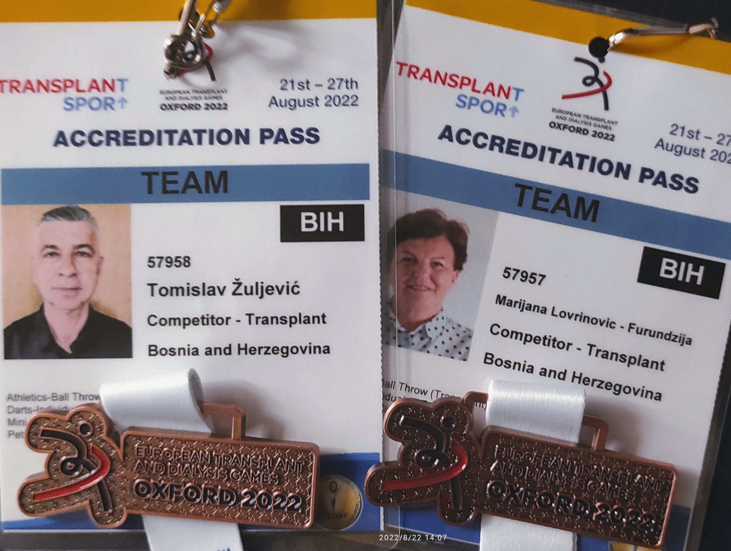 Već prvi dan natjecanja na 11.Europskim sportskim igrama transplantiranih i dijaliziranih u Engleskom Oxfordu mala ekipa koja predstavlja našu zemlju na ovom predivnim prijateljskim susretima, osvojila dvije brončane medalje i tako već sada opravdala očekivanja naših sponzora, naših obitelji i transplantiranih i dijaliziranih prijatelja iz