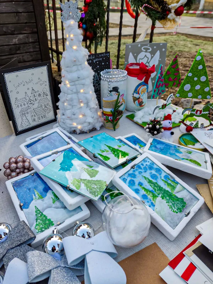 Prodajna izložba devetih razreda uspješno odrađena. Učenici s razrednicama Kristinom Livančić, Marijom Vuleta i Draganom Bohutinski jučer su svoje ručne radove s motivima Božića prezentirali i prodali, a ukusni domaći kolačići najbolje su se prodavali, osim toga popio se i topli čaj.