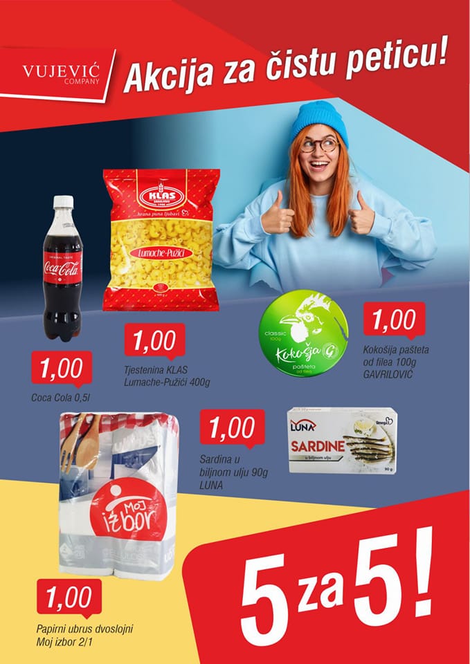 Dragi naši, samo u Vujević Company očekuje vas akcija koju ne smijete propustiti. Čak 5 artikala za nevjerovatnih 5,00 KM‼️ Akcija za čistu peticu‼️