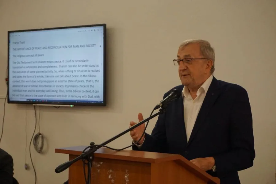 Mislav Ježić, počasni predsjednik Hrvatske paneuropske unije dao je uvid u kompleksnost ratnih situacija s naglaskom na brojne posljedice svih vrsta. „Vjerski vođe i politički vođe pozvani su da u ovim teškim prilikama novih sukoba i ratova promotre jesu li načela njihova djelovanja u skladu s mirotvornim načelima velikih religija i modernoga humanizma.“, zaključio je.