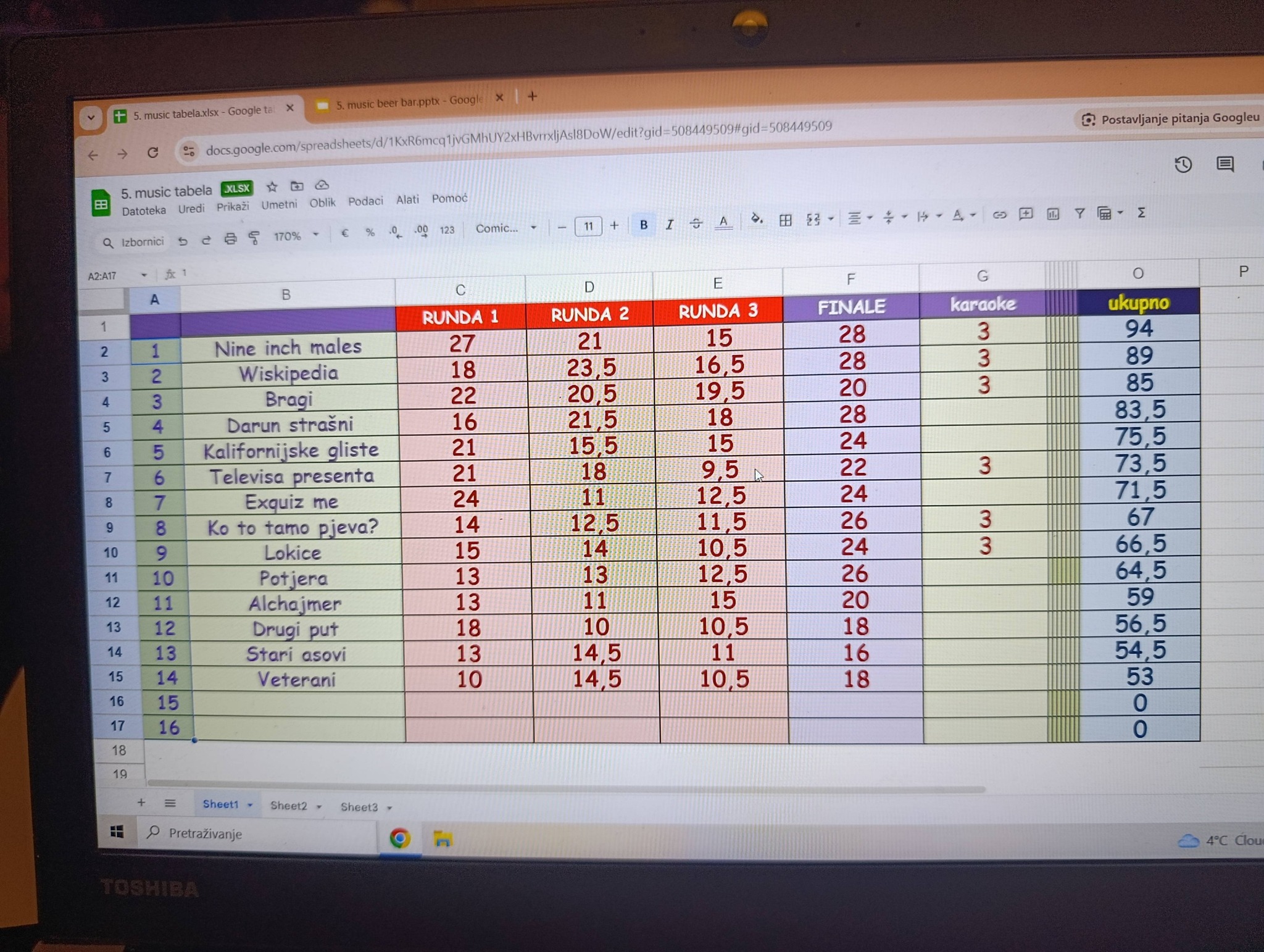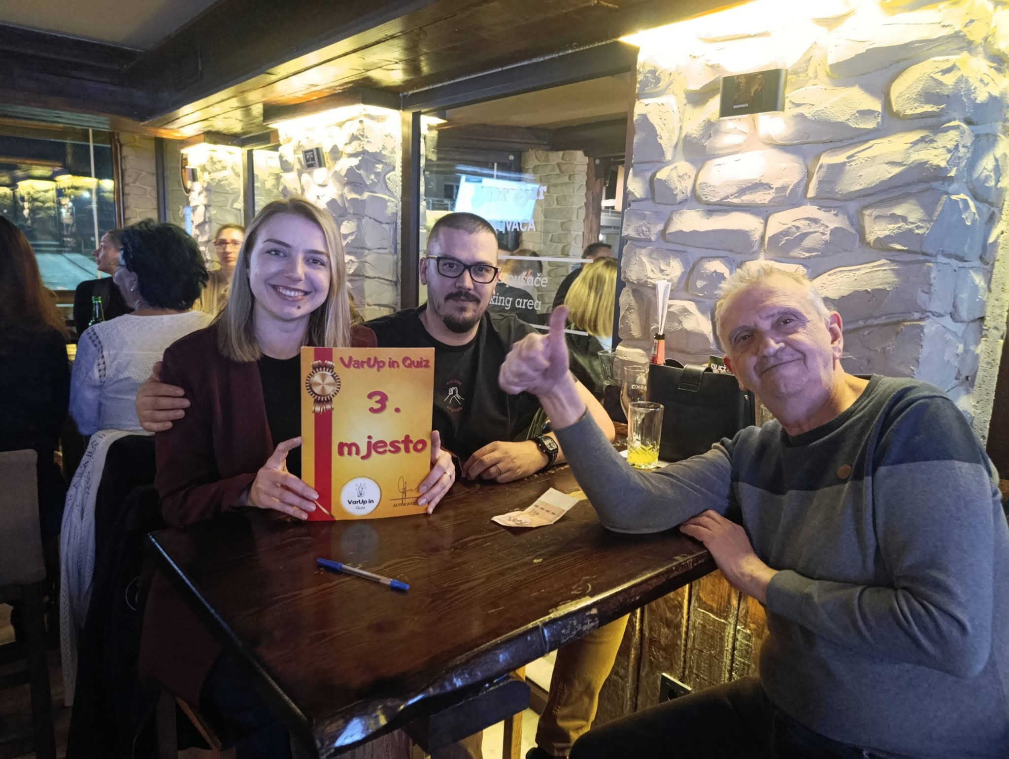 Večer je protekla u iznimno raspoloženoj i opuštenoj atmosferi, uz mnogo smijeha, pjesme i dobre energije. Karaoke su bile uvod u događaj i brzo su podigle atmosferu, pretvarajući kviz u pravi mali glazbeni spektakl u kojem su sudionici rado uzimali mikrofon i sudjelovali u programu.