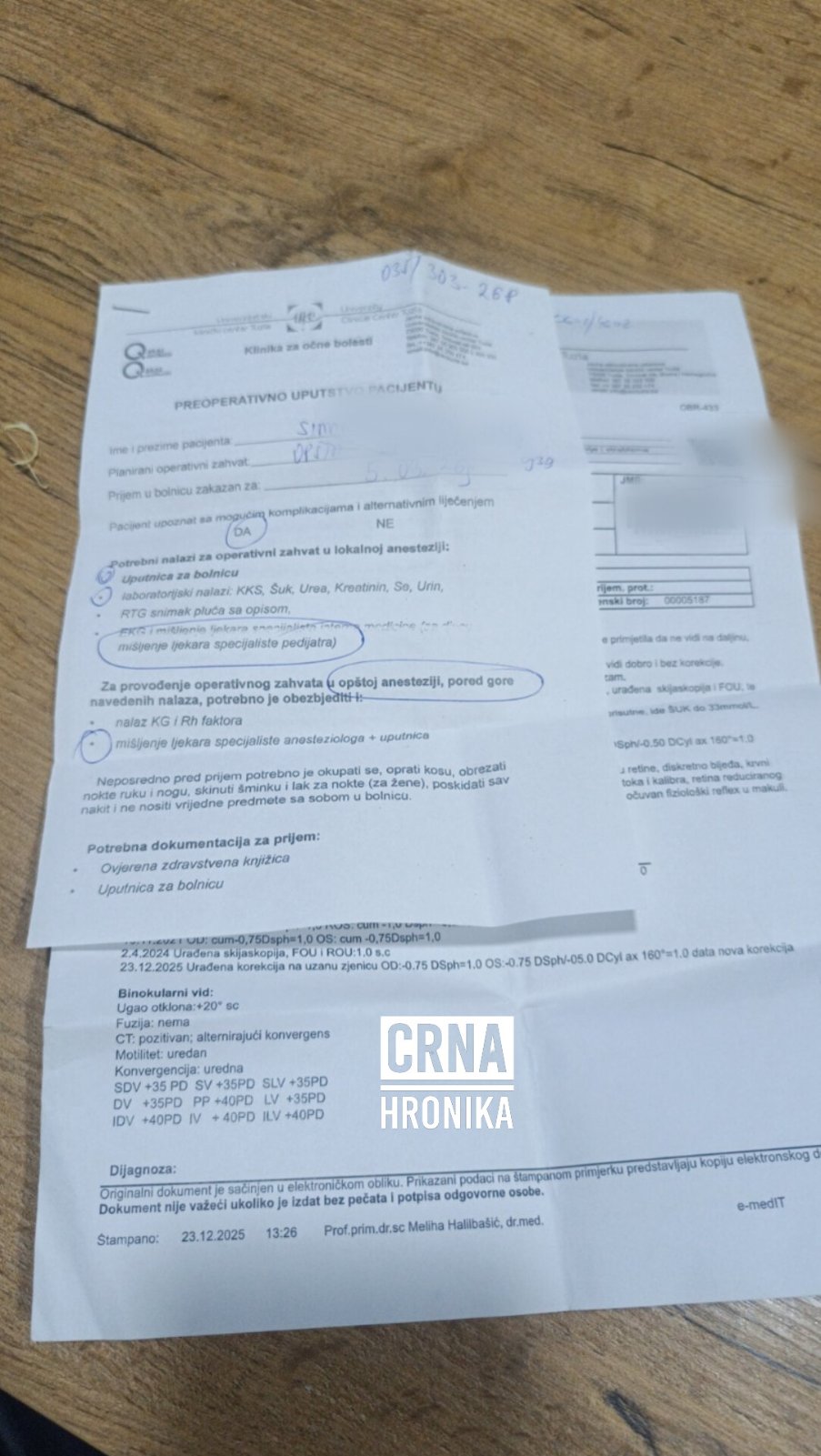 Roditelj jedanaestogodišnjeg dječaka obratio se javnosti nakon što je, kako navodi, planirana operacija oka u Univerzitetskom kliničkom centru Tuzla otkazana neposredno pred zakazani termin.