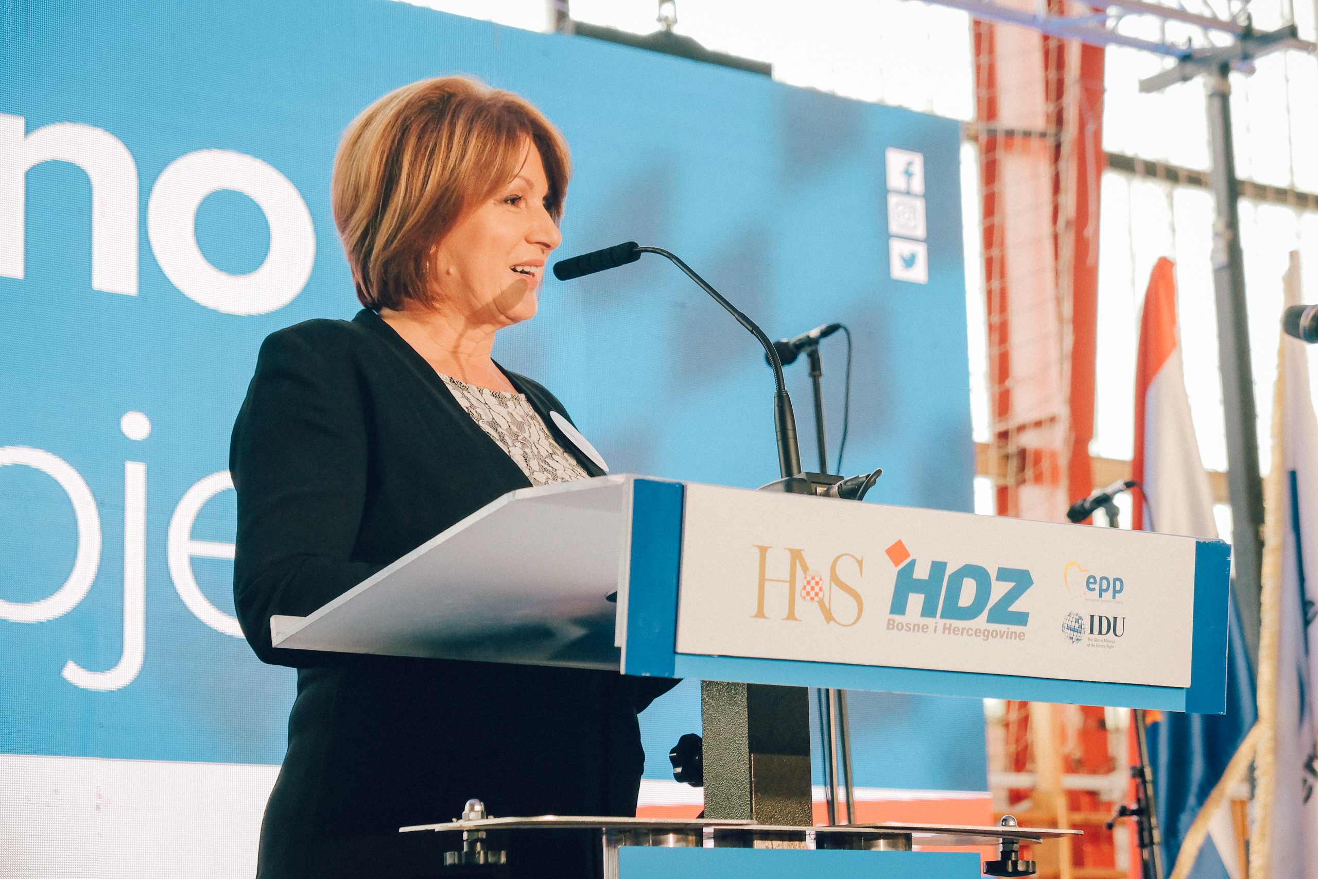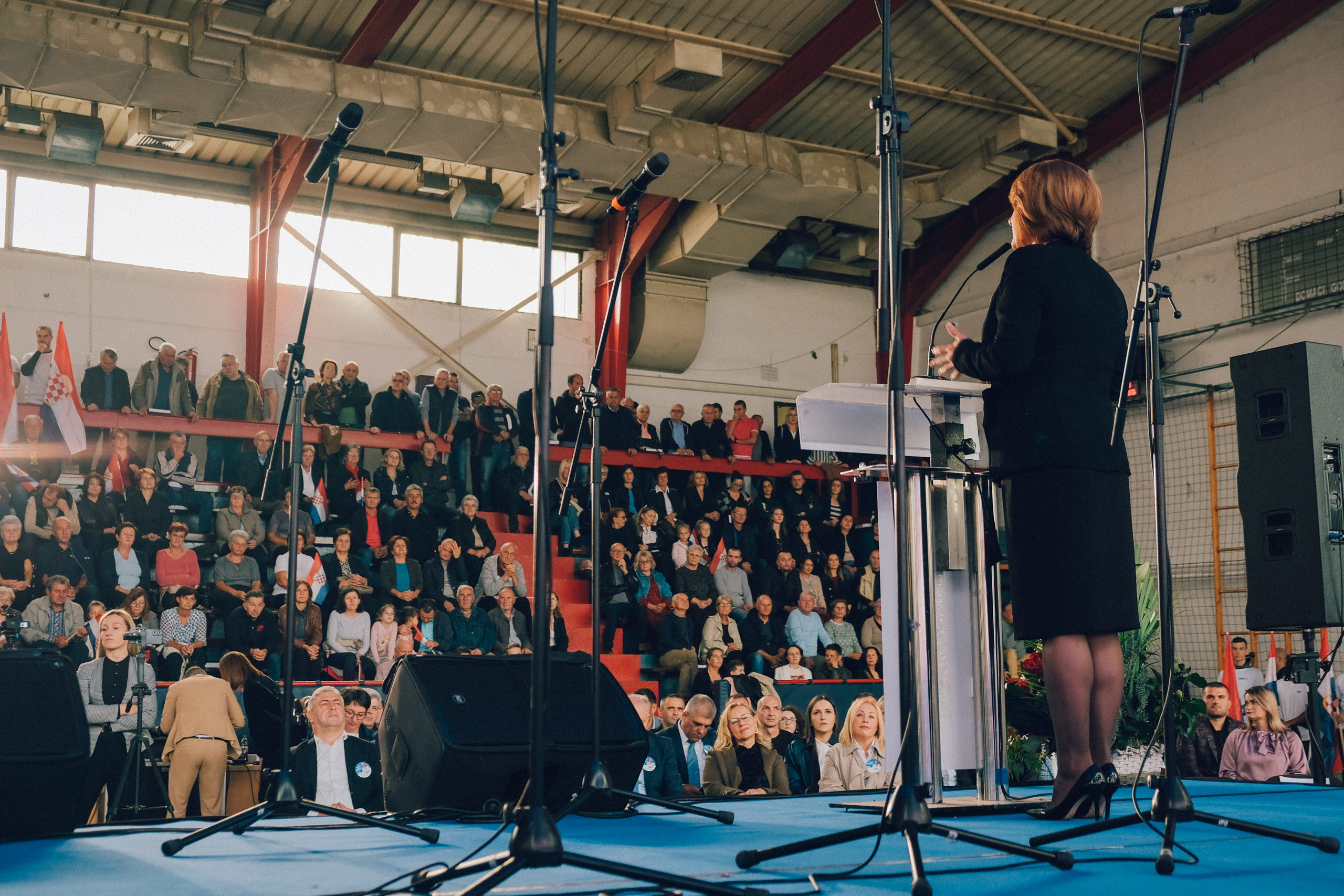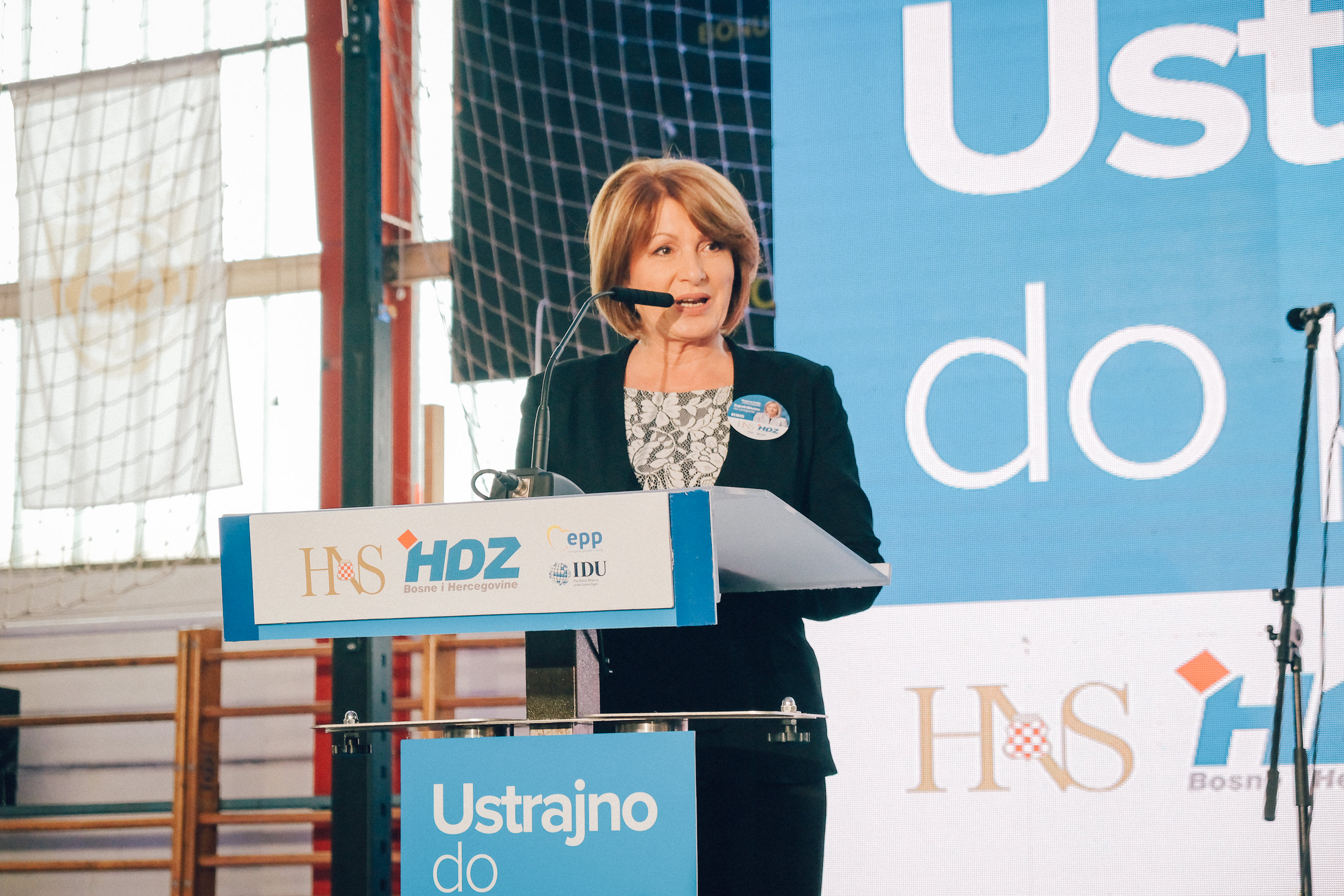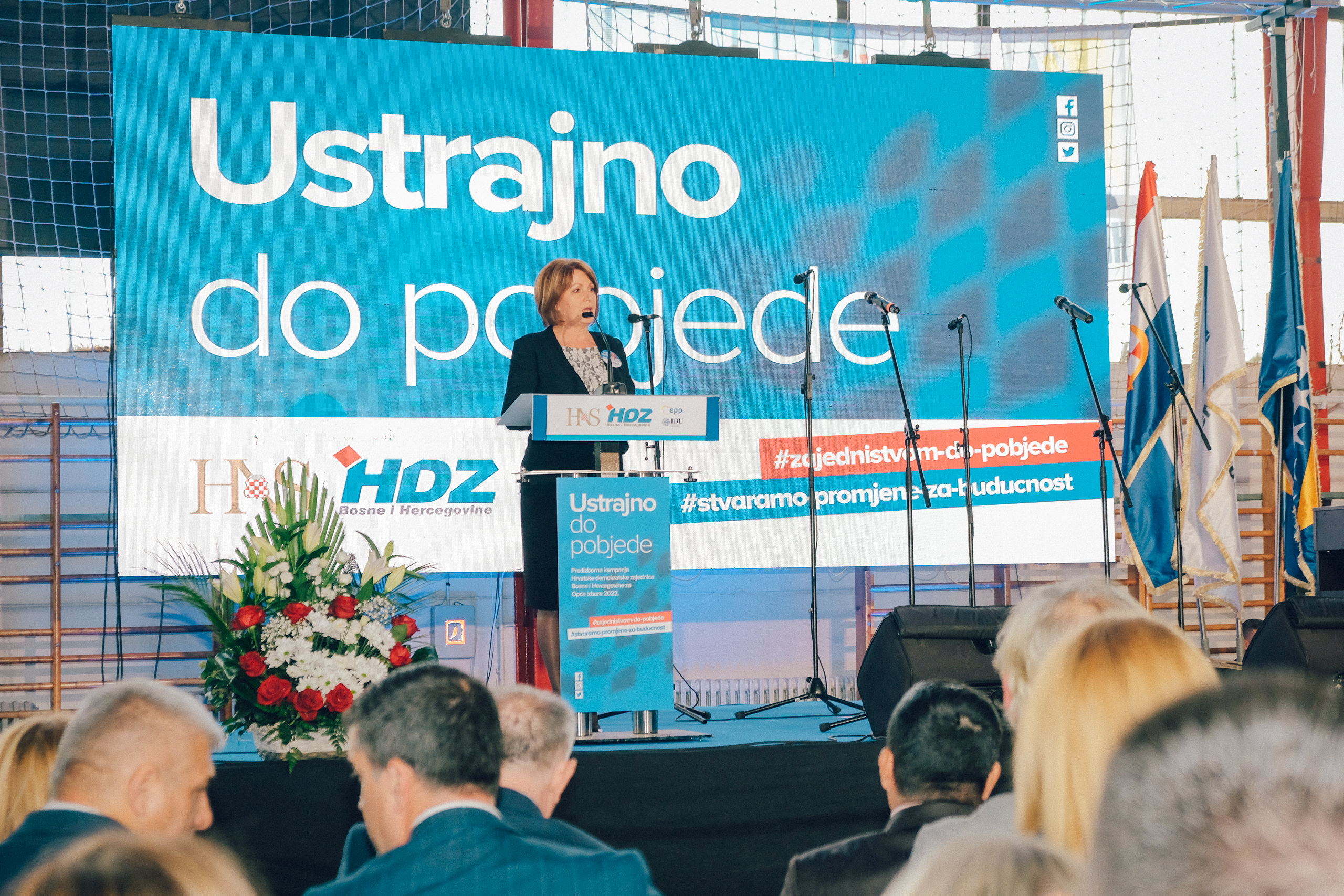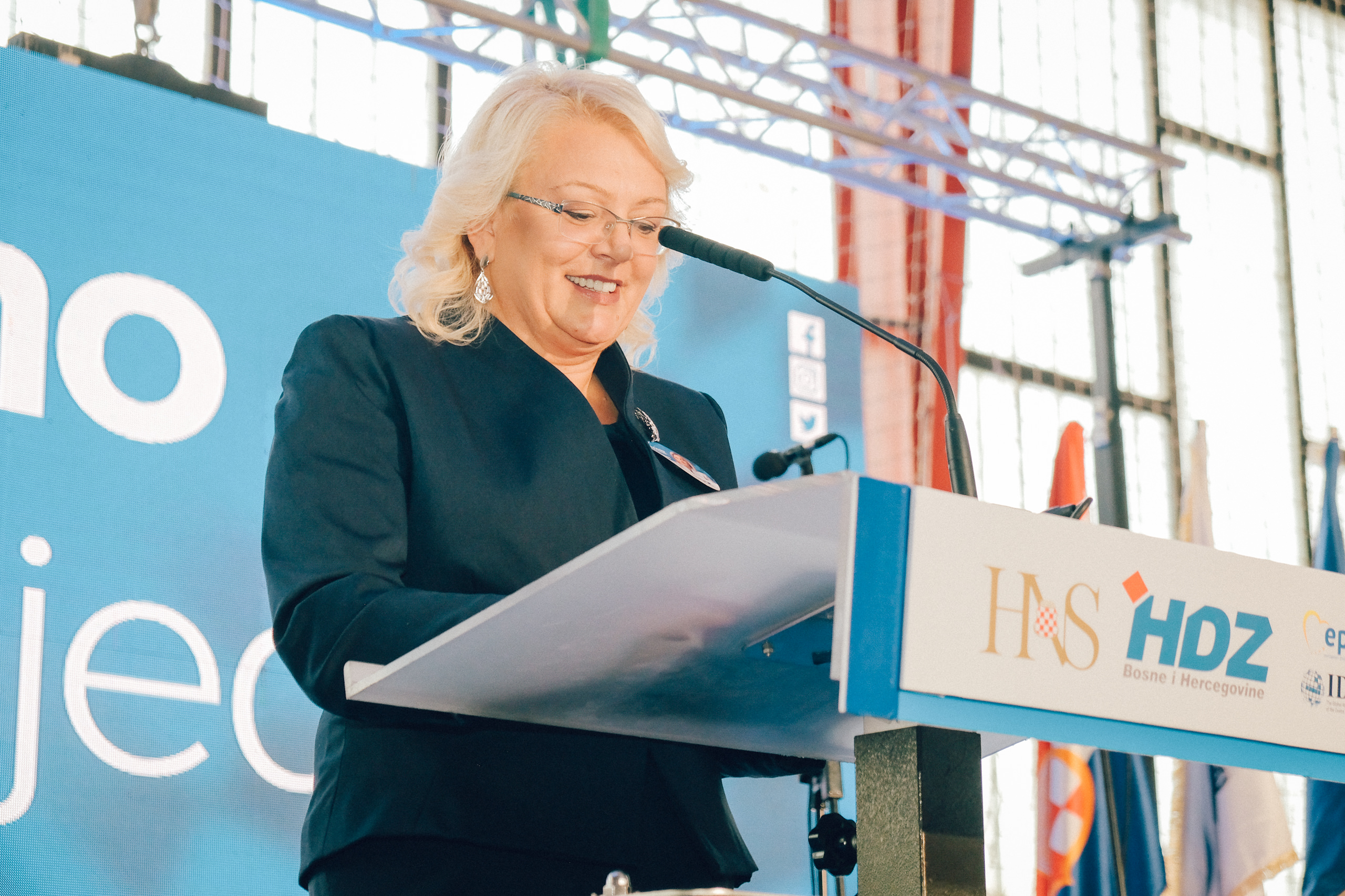 Uz pozdrave i zahvalu svim okupljenima u prepunoj dvorani na predizbornom skupu u Busovači, Borjana Krišto, zajednička kandidatkinja Hrvatskog narodnog sabora BiH za hrvatskog član Predsjedništva BiH, pozdravila je i sve kandidate i dužnosnike kao sudionike velikog političkog projekta zajedništva HDZ-a BiH i Hrvatskog narodnog sabora BiH.
