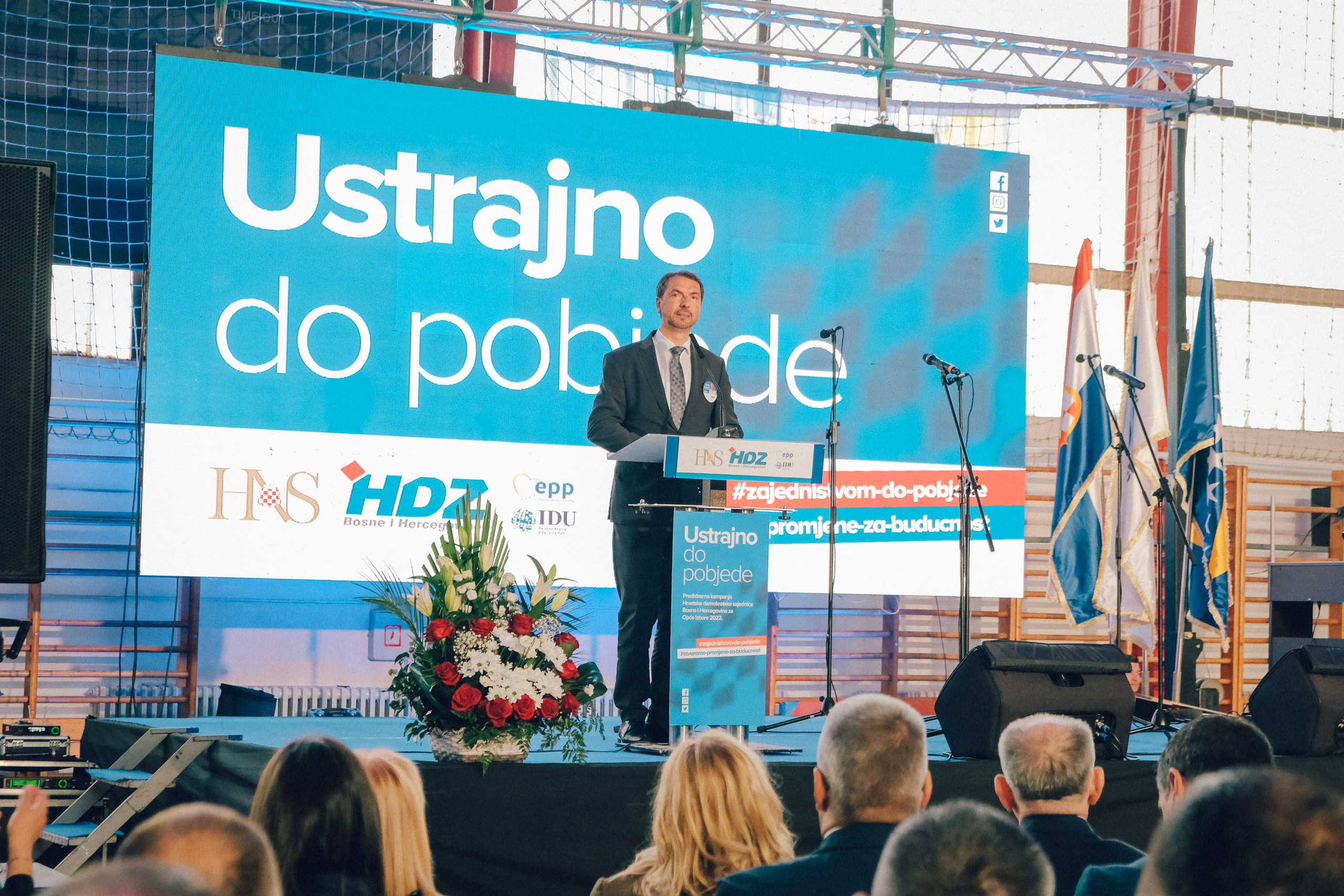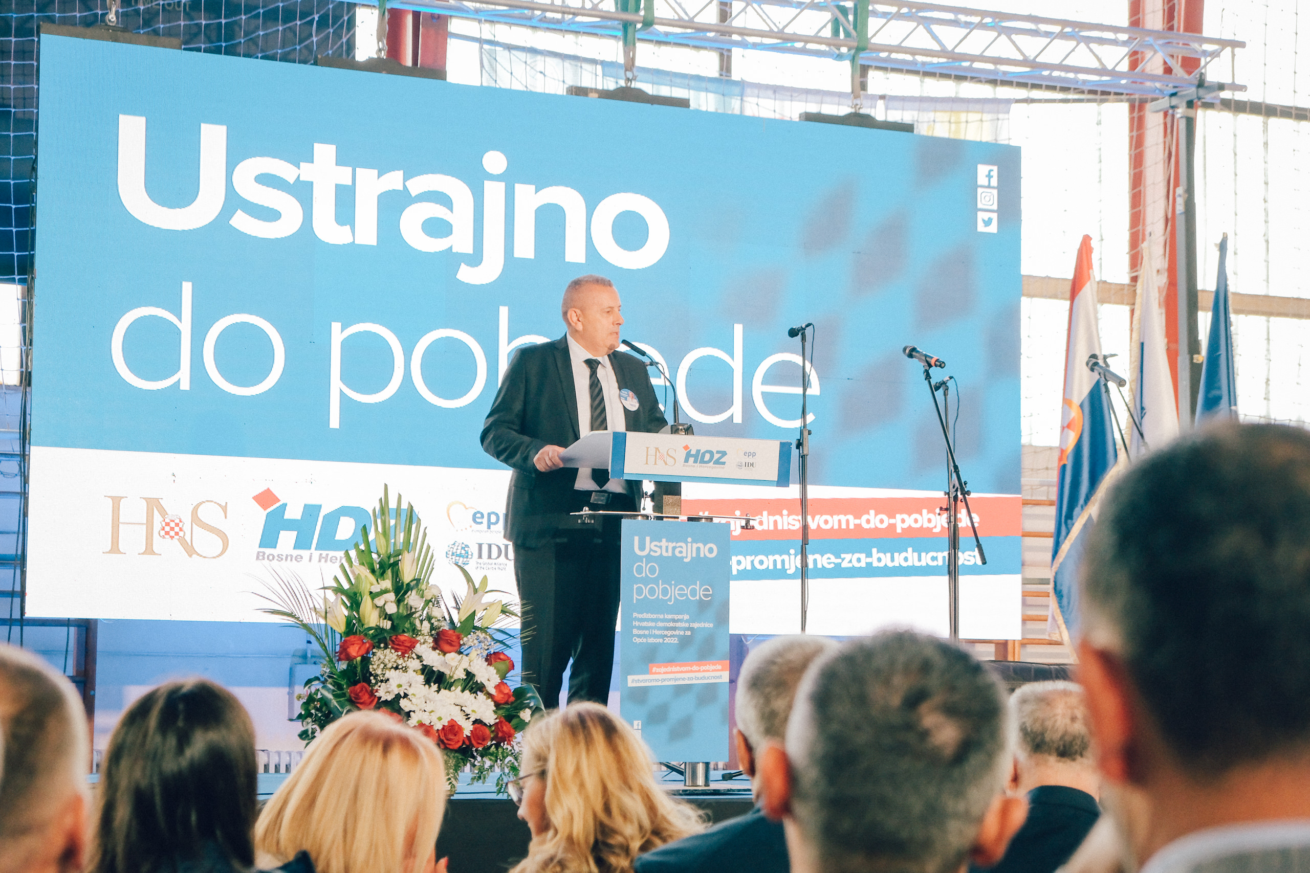 Predizborni skup Hrvatske demokratske zajednice BiH i stranaka okupljenih oko Hrvatskog narodnog sabora BiH održan je večeras u dvorani Srednje škole Busovača.