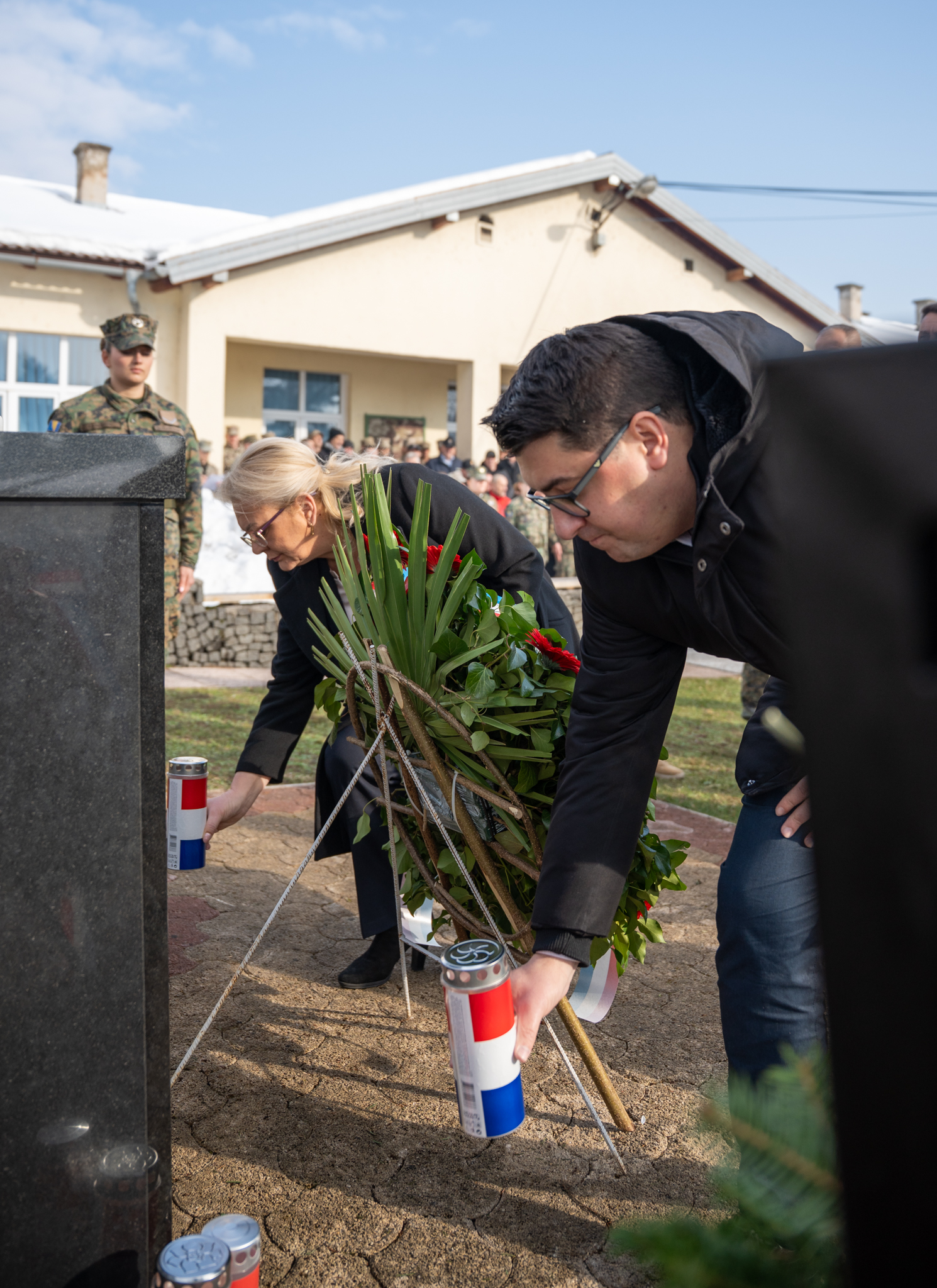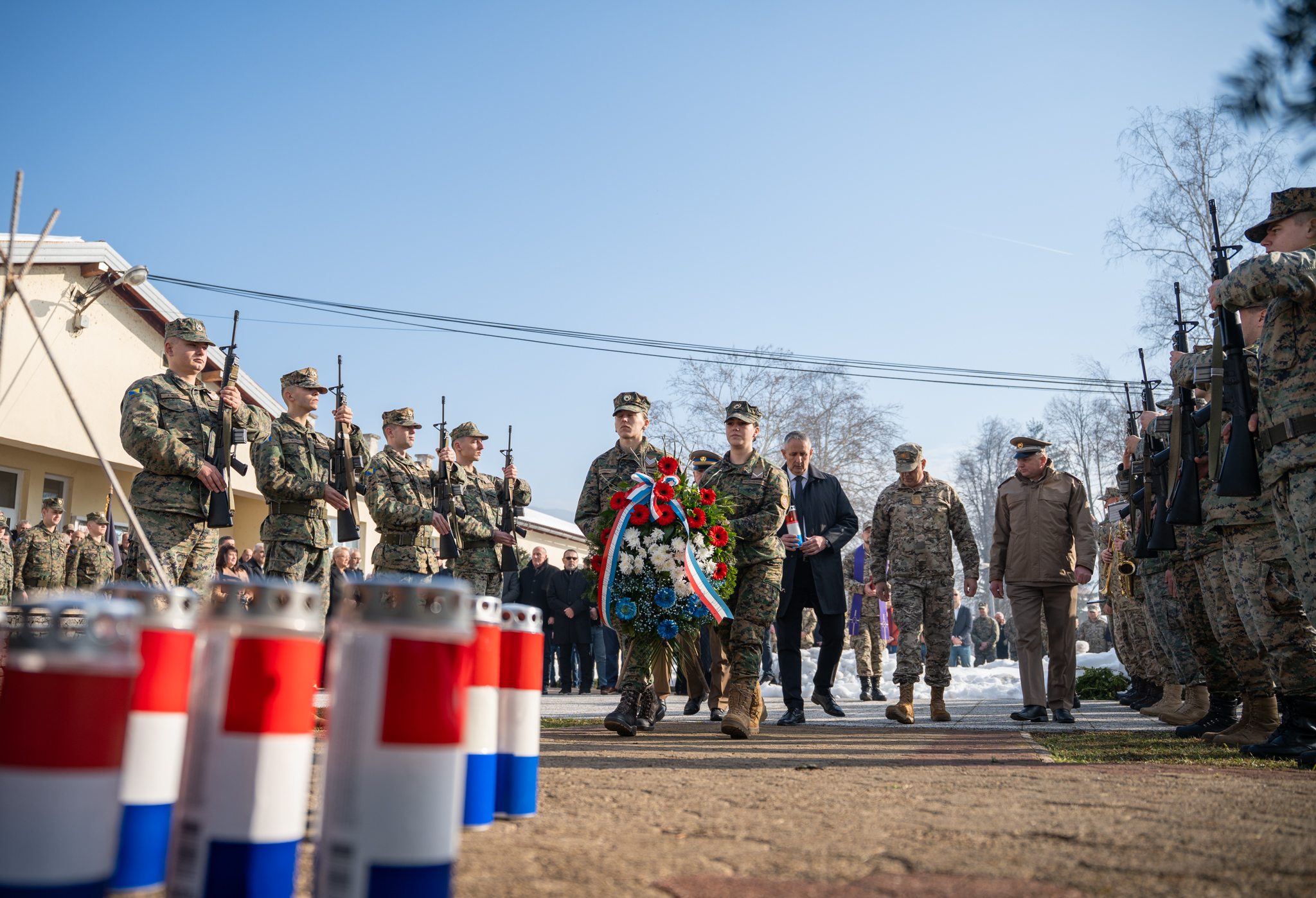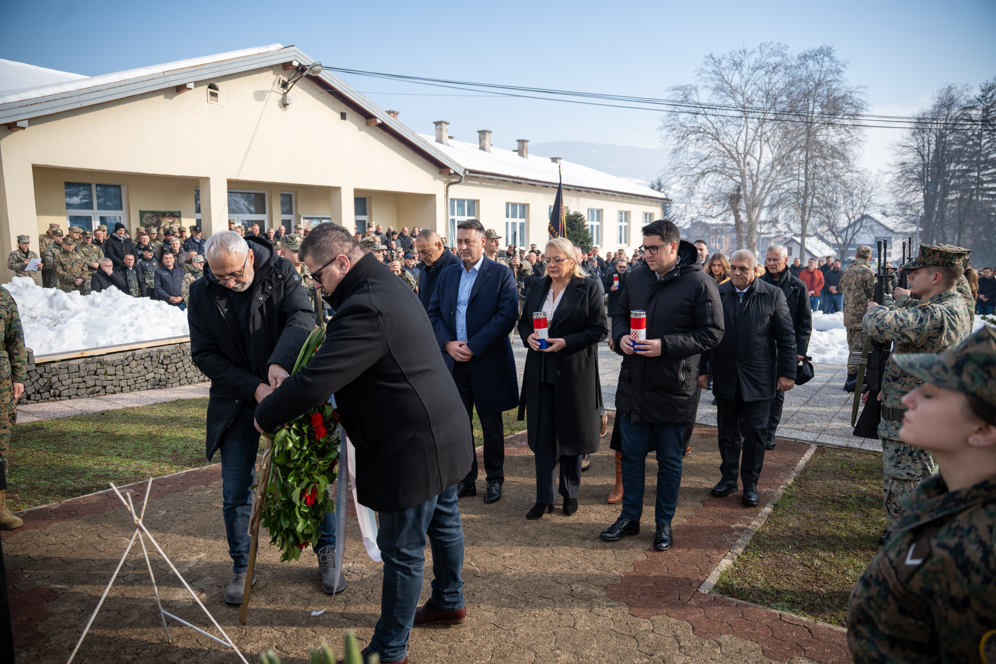 U sklopu obilježavanja upriličeno je i polaganje vijenaca ispred spomen-obilježja u krugu vojarne, nakon čega je služena sveta misa u kapelici vojarne. Misno slavlje predvodio je don Josip Majić, župnik Deževice, istaknuvši u propovijedi važnost mira, osobne odgovornosti i čovjekoljublja, osobito u vojnom pozivu. “Molitva pravog vojnika nije propast neprijatelja, nego mir,” poručio je don Majić. Misno slavlje uveličao je zbor sv. Martin pod ravnanjem sestre Marinele Zeko, dok je svečani program tijekom obilježavanja pratio i Vojni orkestar Oružanih snaga Bosne i Hercegovine.