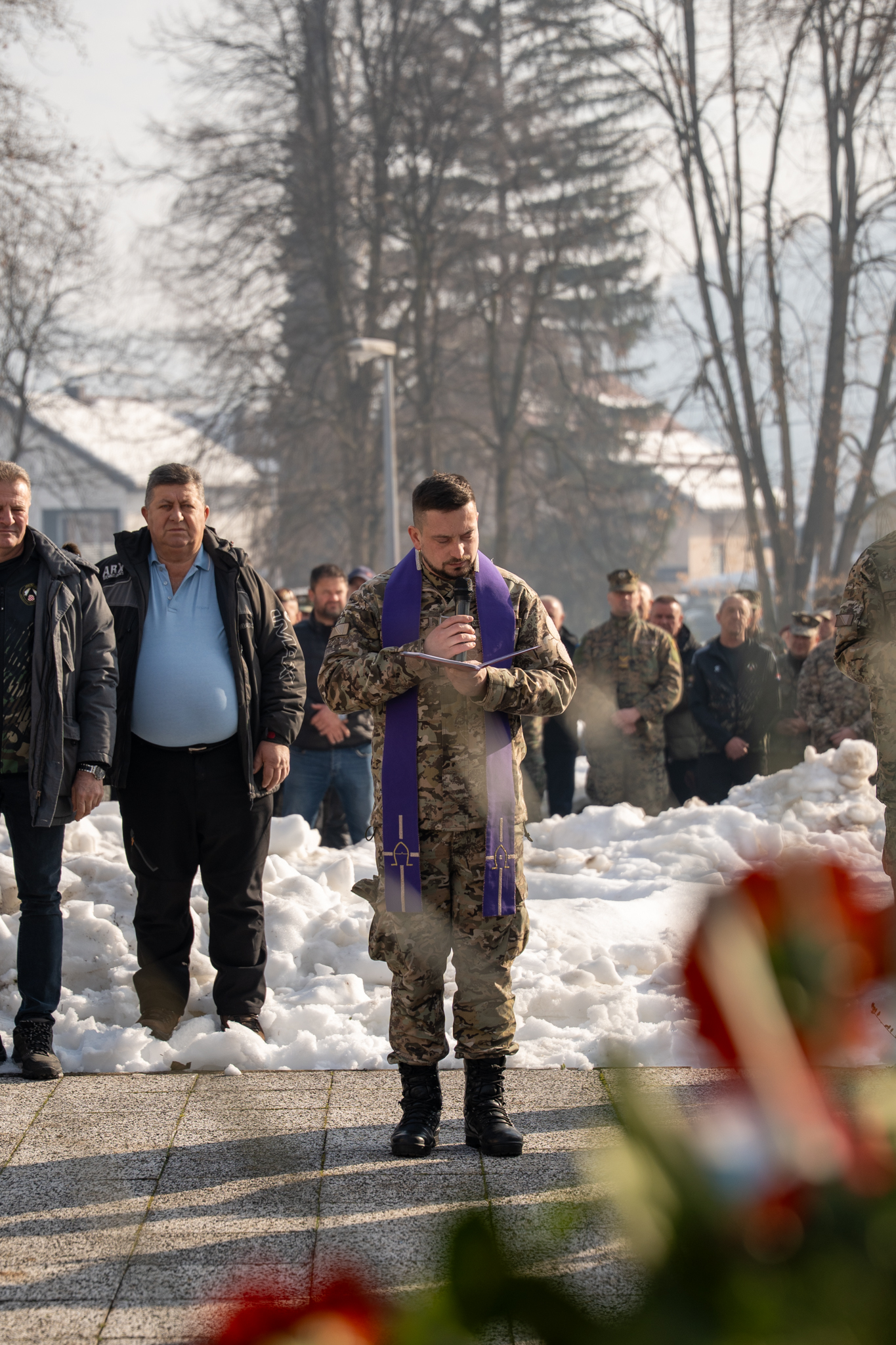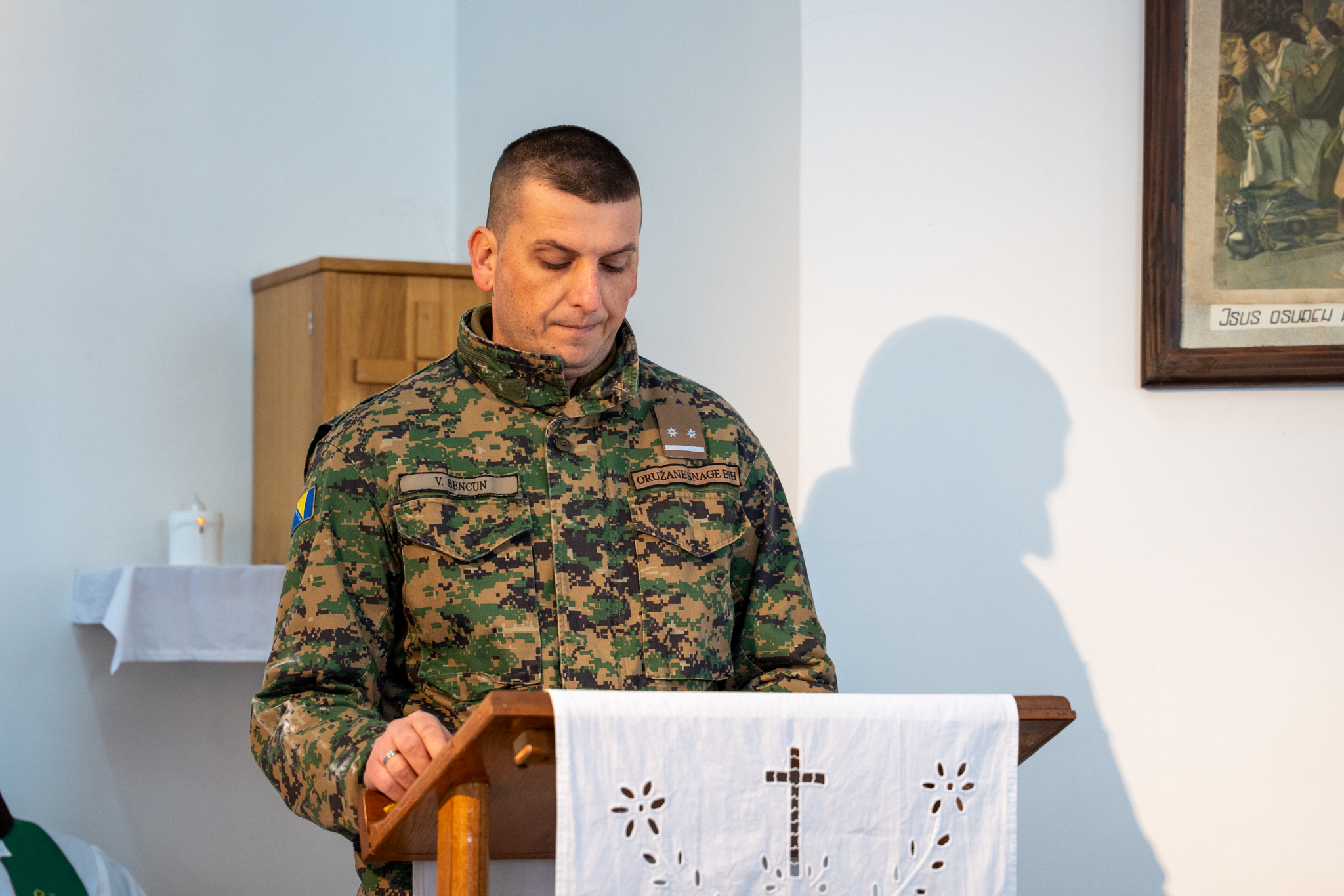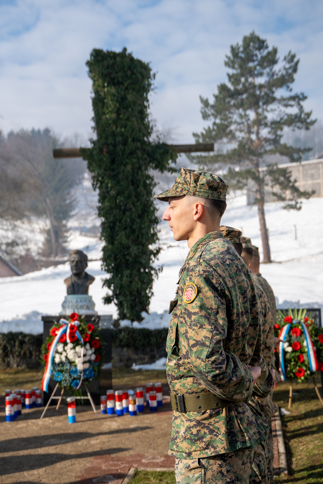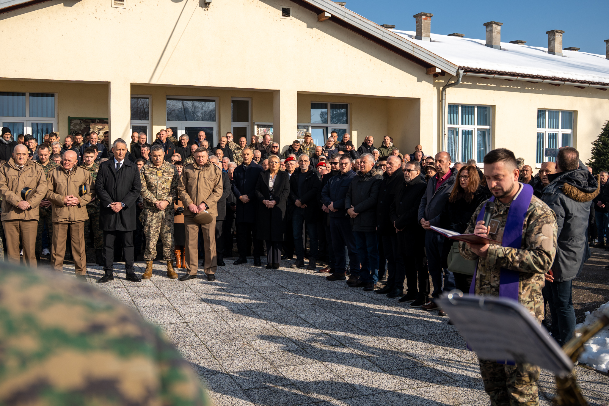 U sklopu obilježavanja upriličeno je i polaganje vijenaca ispred spomen-obilježja u krugu vojarne, nakon čega je služena sveta misa u kapelici vojarne. Misno slavlje predvodio je don Josip Majić, župnik Deževice, istaknuvši u propovijedi važnost mira, osobne odgovornosti i čovjekoljublja, osobito u vojnom pozivu. “Molitva pravog vojnika nije propast neprijatelja, nego mir,” poručio je don Majić. Misno slavlje uveličao je zbor sv. Martin pod ravnanjem sestre Marinele Zeko, dok je svečani program tijekom obilježavanja pratio i Vojni orkestar Oružanih snaga Bosne i Hercegovine.