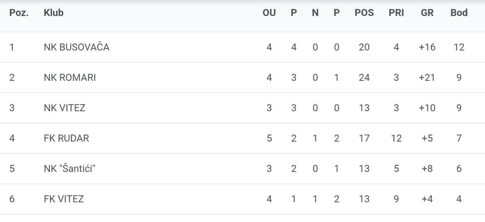 Pioniri NK Busovača su 17. listopada odigrali novu ligašku utakmicu protiv NK Šantići i ostvarili uvjerljivu pobjedu rezultatom 5:1. Ekipa je dominirala terenom i trenutno se nalazi na prvom mjestu u ligi.