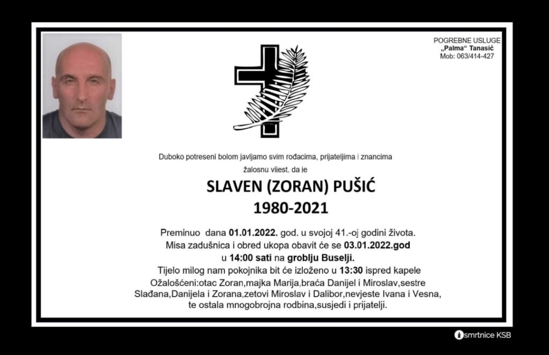 Dana 1.1.2022. u svojoj 41. godini preminuo je Slaven Pušić.