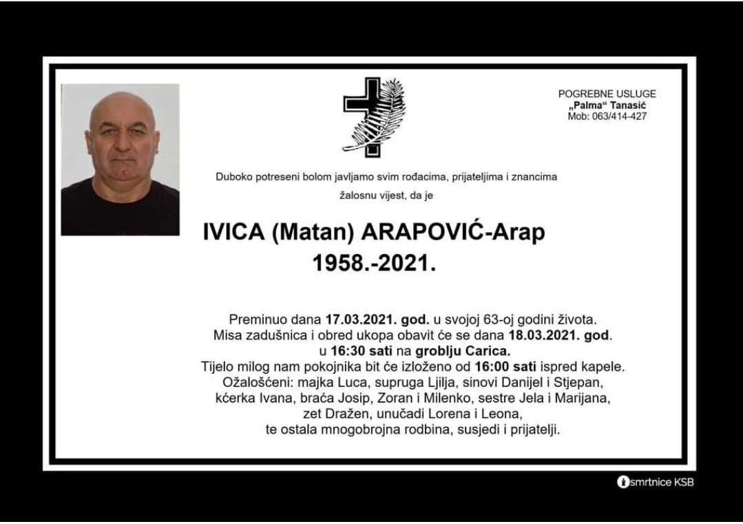 Busovača je danas zavijena u crno. U 63. godini preminuo je svima nam poznati Arap, Ivica Arapović.