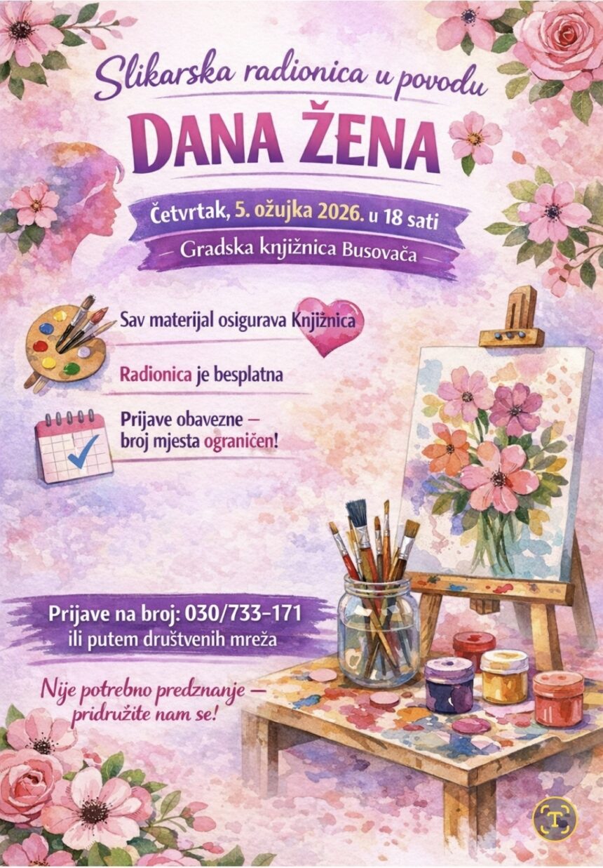 U četvrtak, 5. ožujka 2026. godine u 18 sati, Gradska knjižnica organizira slikarsku radionicu u povodu obilježavanja Međunarodnog dana žena.