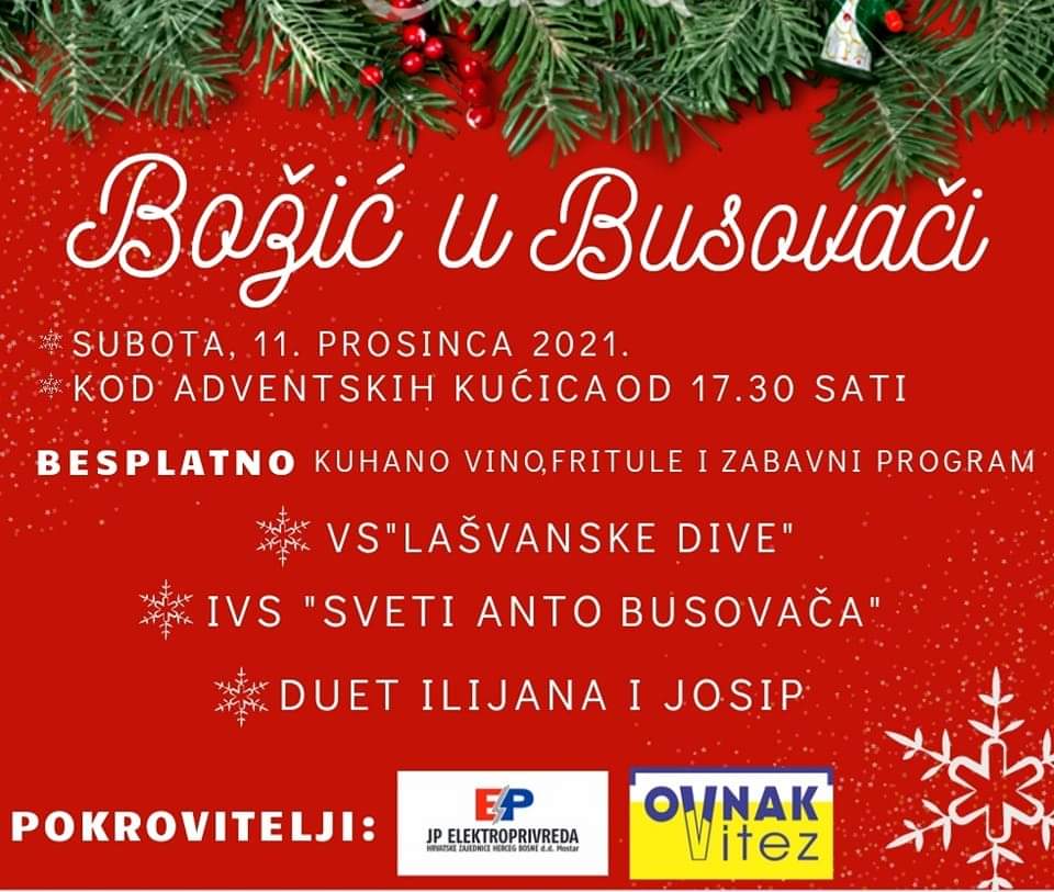 “Velika hvala našim pokroviteljima, J.P. “Elektroprivreda HZ HB” d.d. Mostar i poduzeću “Ovnak” d.o.o. Vitez! Vidimo se sutra, dobro nam došli!”, ističu organizatori u objavi na Facebook stranici Božić u Busovači.