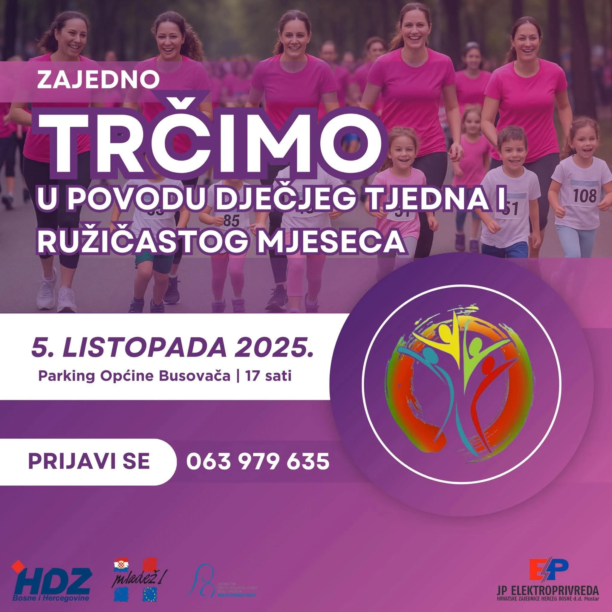 Udruga Mladi zajedno, Općinski odbor Mladeži HDZ-a BiH Busovača i OO Zajednice žena HDZ-a BiH „Kraljica Katarina Kosača“, pod pokroviteljstvom JP Elektroprivreda HZ HB d.d. Mostar, pozivaju vas na utrke povodom Dječjeg tjedna i Ružičastog listopada.