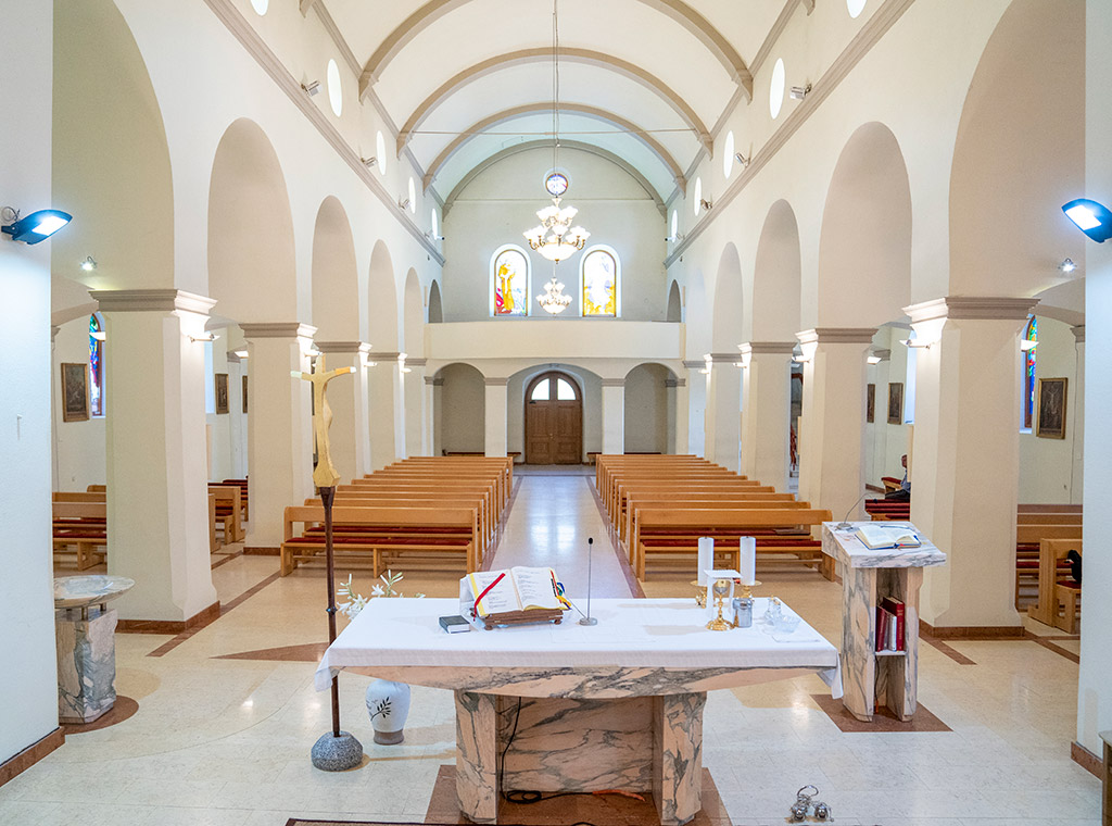 Bogoslužja su se prvobitno obavljala na otvorenom, a kasnije u skromnoj kapeli jer su franjevci tek 1850-ih dobili dopuštenje za izgradnju crkve.