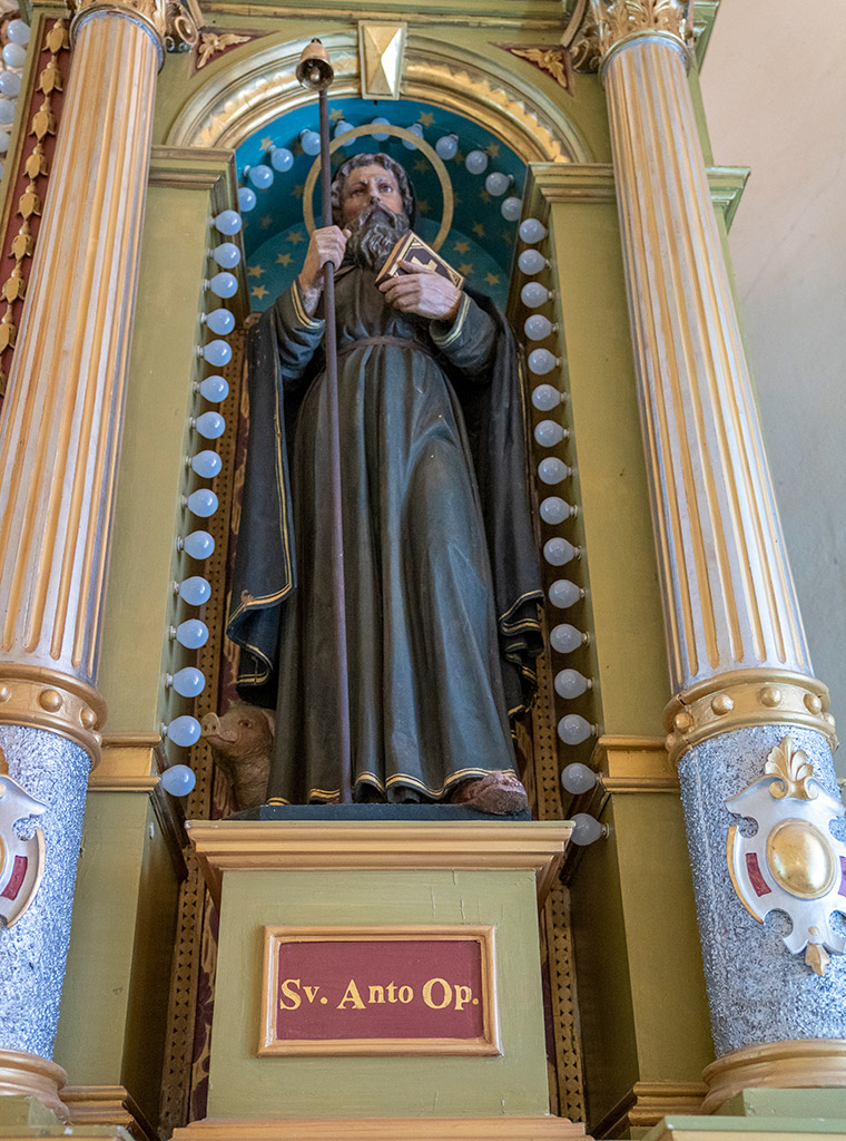 Dodaje kako ima „puno posla“ jer u novije vrijeme na njoj su rađeni samo vitraji – prije nekoliko godina radio ih je župljanin Zdenko Jurišić, ali osim togadolačku ljepoticu krase brojne umjetnine. Tako se na njezinim zidovima nalaze postaje križnoga puta nepoznata autora iz 18. stoljeća te nekoliko svetačkih kipova. Početkom 20. stoljeća postavljen je novi oltar i propovjedaonica, djelo časnog brata Klarenza Hemmerlmayra iz Tirola. S obzirom da je crkva obnavljana u drugoj polovici 20. stoljeća, urađeno je novo oltarno drvo koje je 1983. izradio kipar Zdenko Grgić.