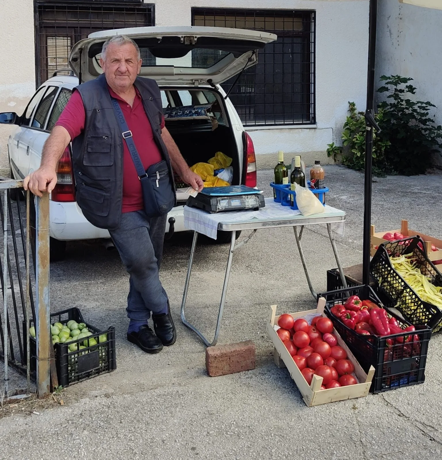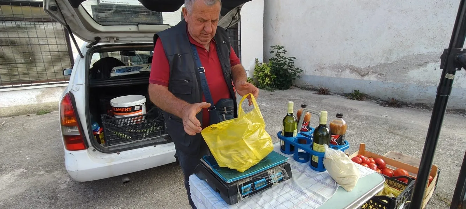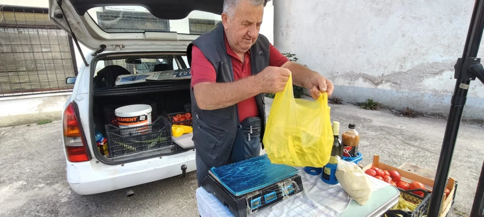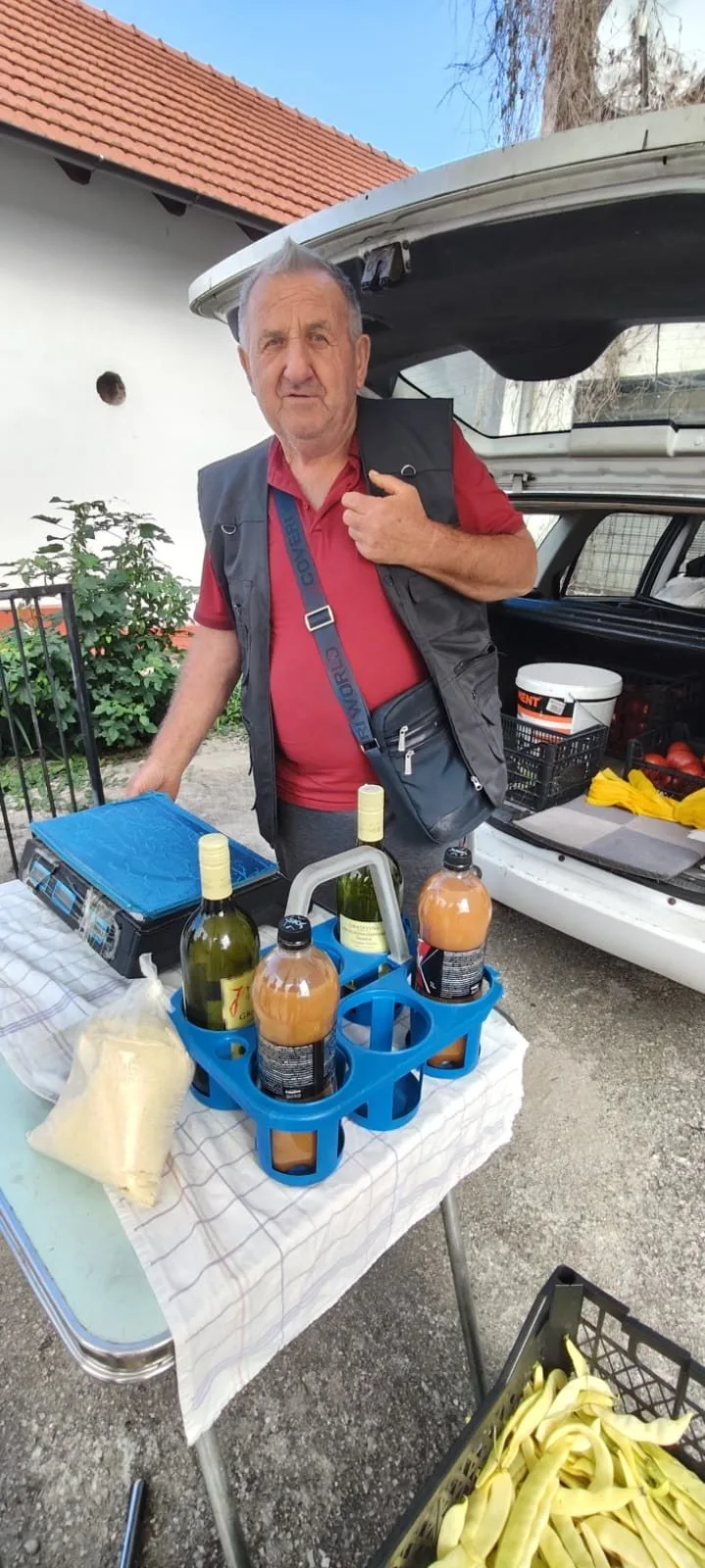 Na njegovom štandu ispred župne crkve u Busovači možete pronaći svježe mahune, rajčice, paprike, kukuruzno brašno, domaće sirće i druge proizvode koji dolaze ravno iz vrta i polja u ruke kupaca.