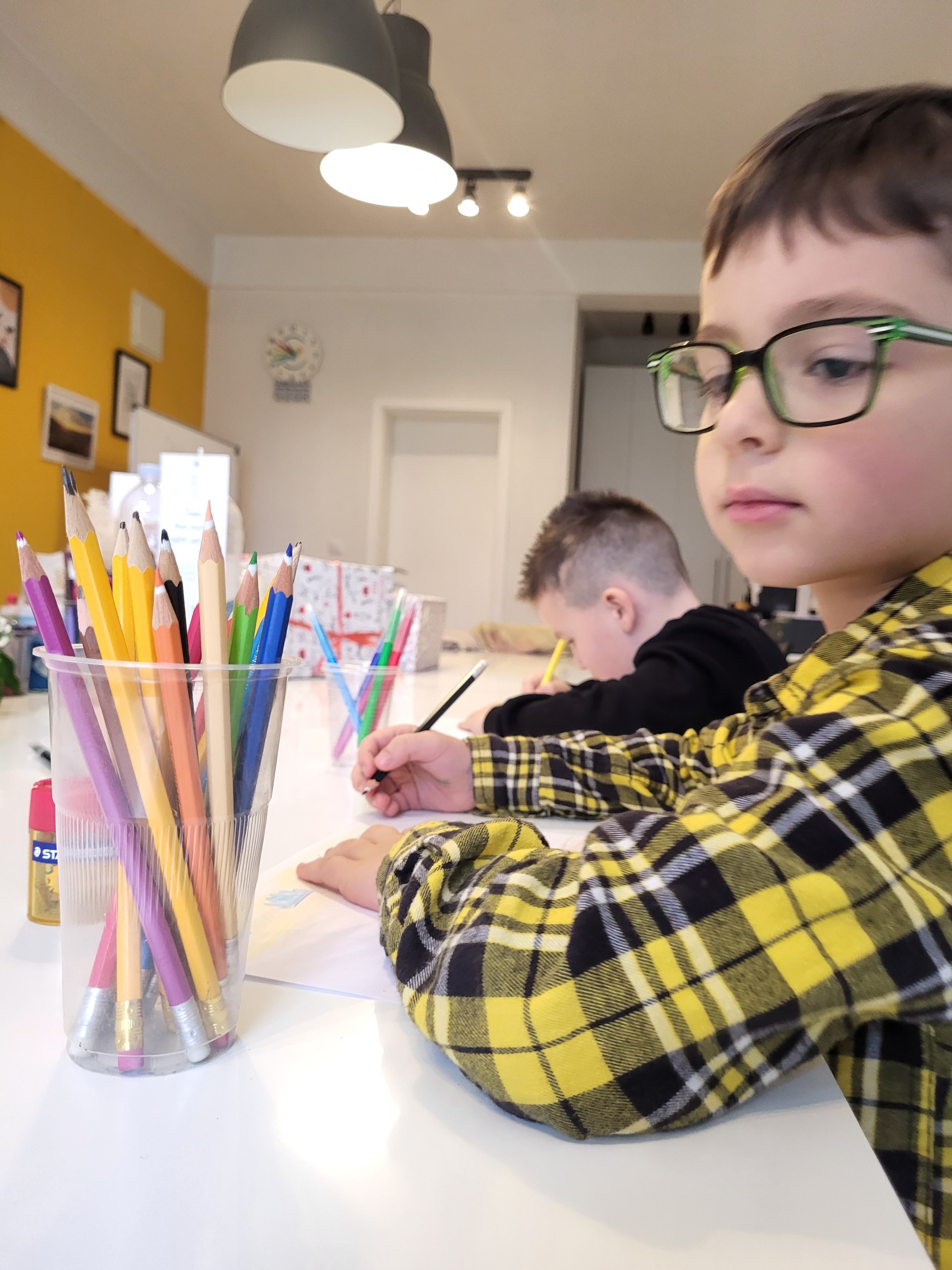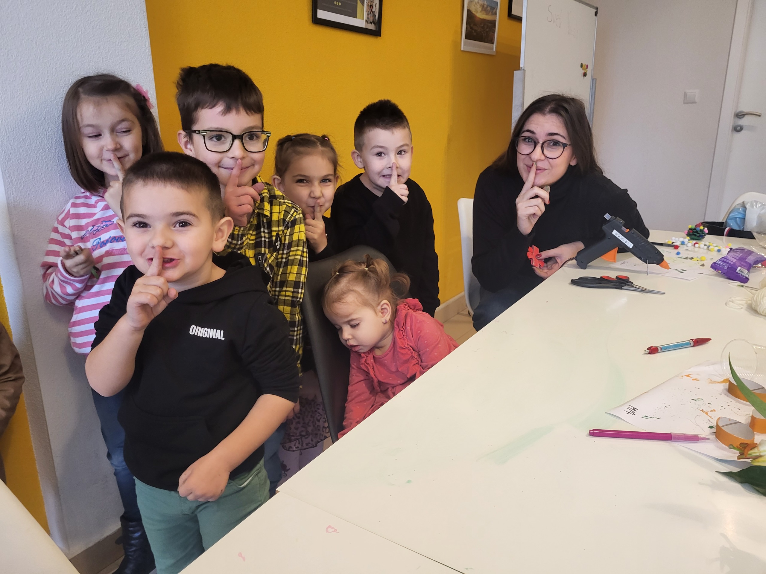 Ostatak vremena vježbali smo uz pomoć radnih listića sa različitim zadacima za sve sudionike. Brojali smo, prepoznavali iste oblike i slike, povezivali ih, rezali škaricama, prepoznavali slike povezane sa zimom i slično. Za kraj, uz grickalice i sokiće i uz pjesmu i igru dočekali smo roditelje u dobrom raspoloženju.