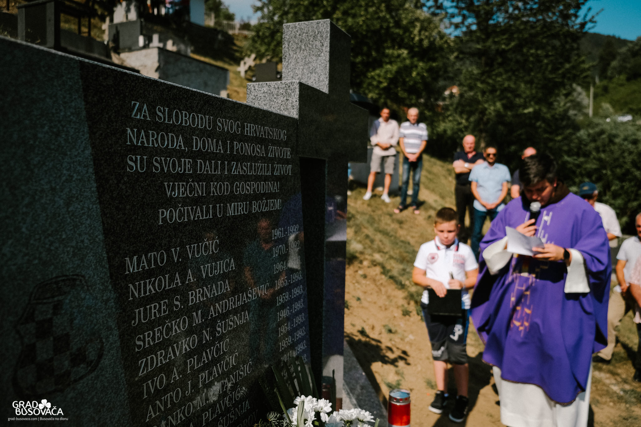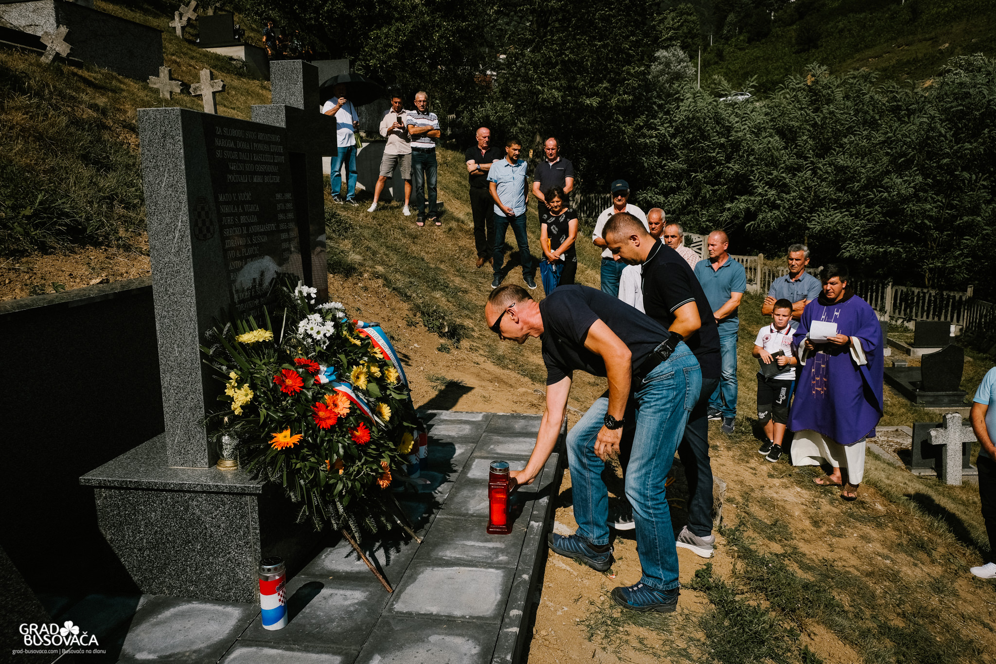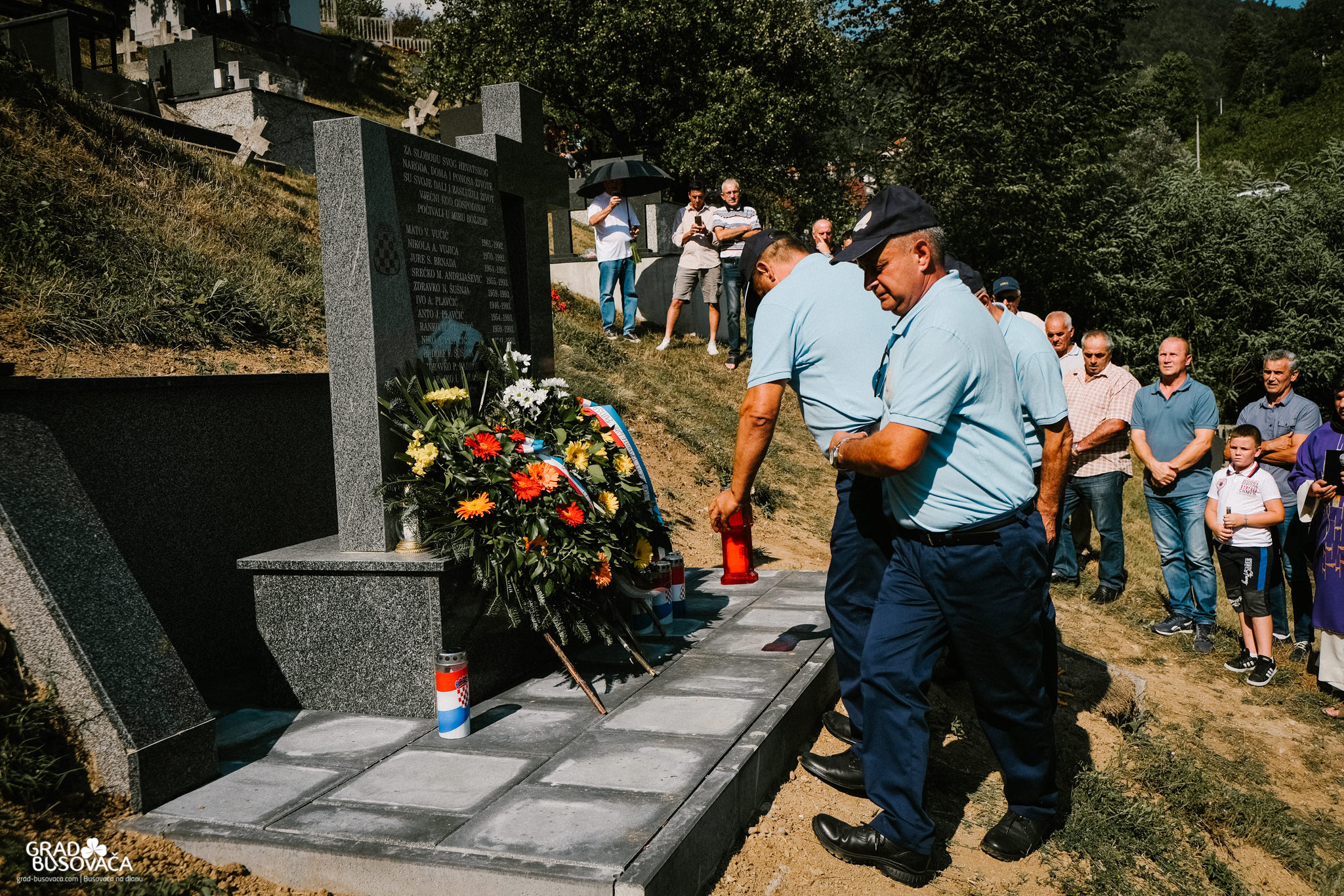 Prije samog blagoslova spomenika, izaslanstvo koordinacije braniteljskih udruga općine Busovača predvođeno Marinkom Ćosićem i Dragom Smoljom položilo je vijence i upalilo svijeće. Uz njih, vijence su položili i svijeće upalili i zapovjednik brigade Jure Čavara, Anto Brnada kojemu su tijekom rata poginuli dvojica braće i otac, predstavnici 3. satnije 4. bojne brigade Nikola Šubić Zrinski – zapovjednik satnije Željko Badrov, voda Dragan Plavčić i Dragan Andrijašević, Udruga policajca hrvatskih branitelja u BiH na čelu s Josipom Marićem, izaslanstvo OO HDZ BiH Busovača – vijećnici u OV Busovača Danijela Trogrlić, Goran Milić, Dario Marušić, Dario Plavčić te Pero Lovrić.