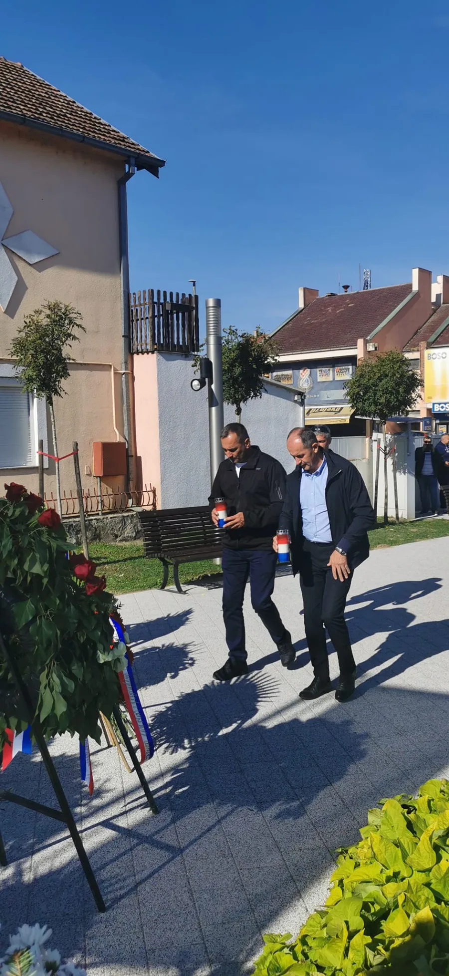 Dan je započeo zajedničkom molitvom i polaganjem vijenaca kod Spomenika obrane u centru Nuštar, gdje su se s posebnim emocijama prisjetili i odali počast svim poginulim i nestalim braniteljima te civilnim žrtvama Općine Nuštar. Načelnik općine Nuštar Hrvoje Drinovac uputio je prigodne riječi dobrodošlice dragim prijateljima i gostima.