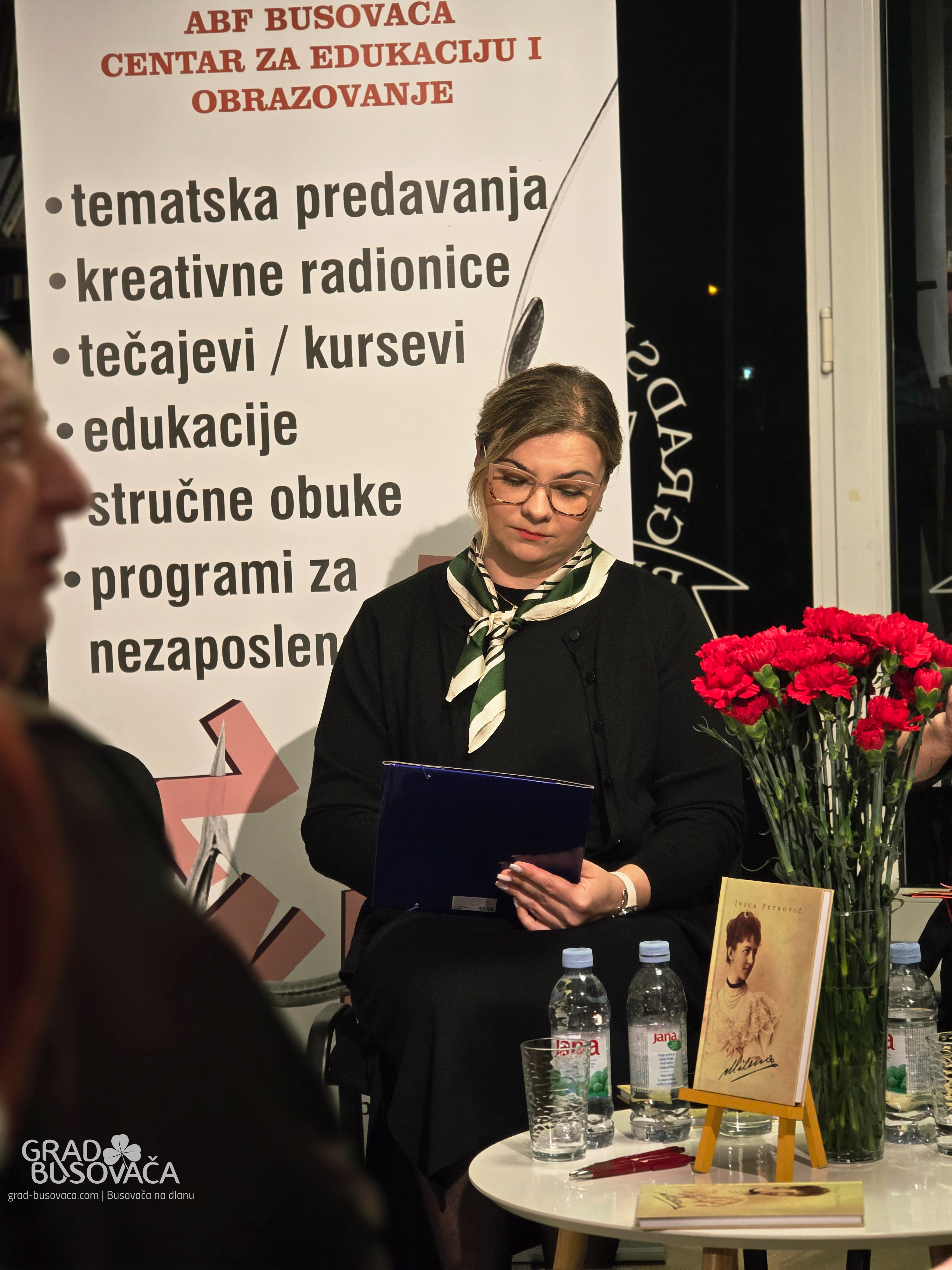 Prije samog predstavljanja prisutnim gostima obratila se direktorica JU Gradska knjižnica Busovača gospođa Ivana Smoljo koja se zahvalila svima na dolasku, i istaknula kako se uvijek prisjeti riječi bivše direktorice gopođe Ankice Mravak koja je govotila da je Gradska knjižnica dnevni boravak svih nas, i kako se zaista u njoj svi trebamo osjećati kao u vlastitom domu. Zahvalila se prof. Ivici, i ABF-u Busovača na suorganizaciji ovog događaja.