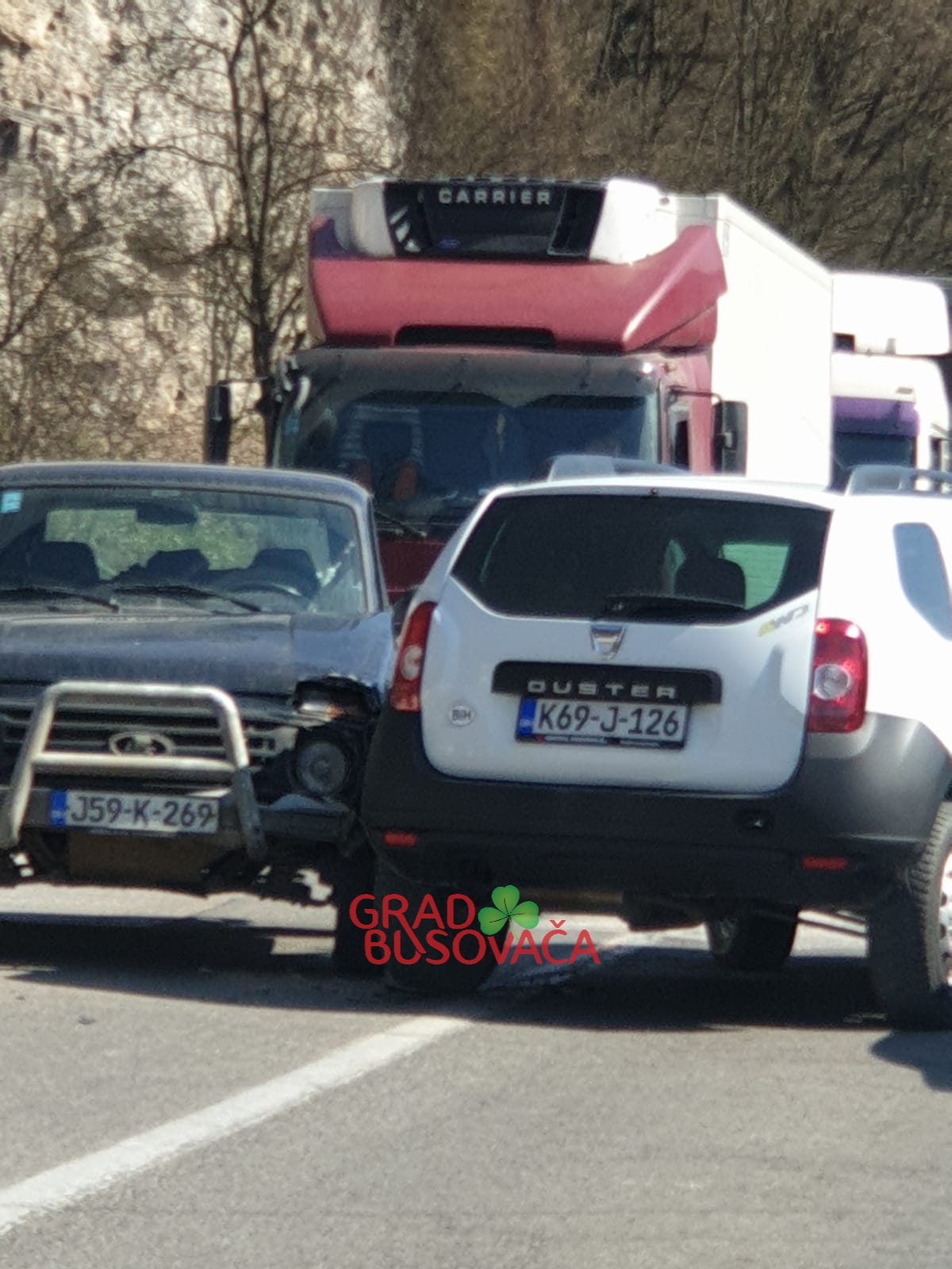 Sudarila su se dva osobna vozila na kojima je pričinjena materijalna šteta. Kako doznajemo od čitatelja sredisnjabosna.ba portala, teže ozlijeđenih nema. Na ovoj dionici puta prometuje se usporeno.