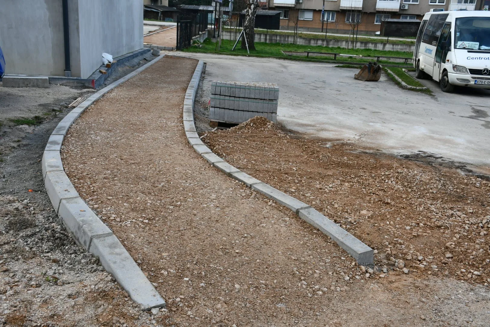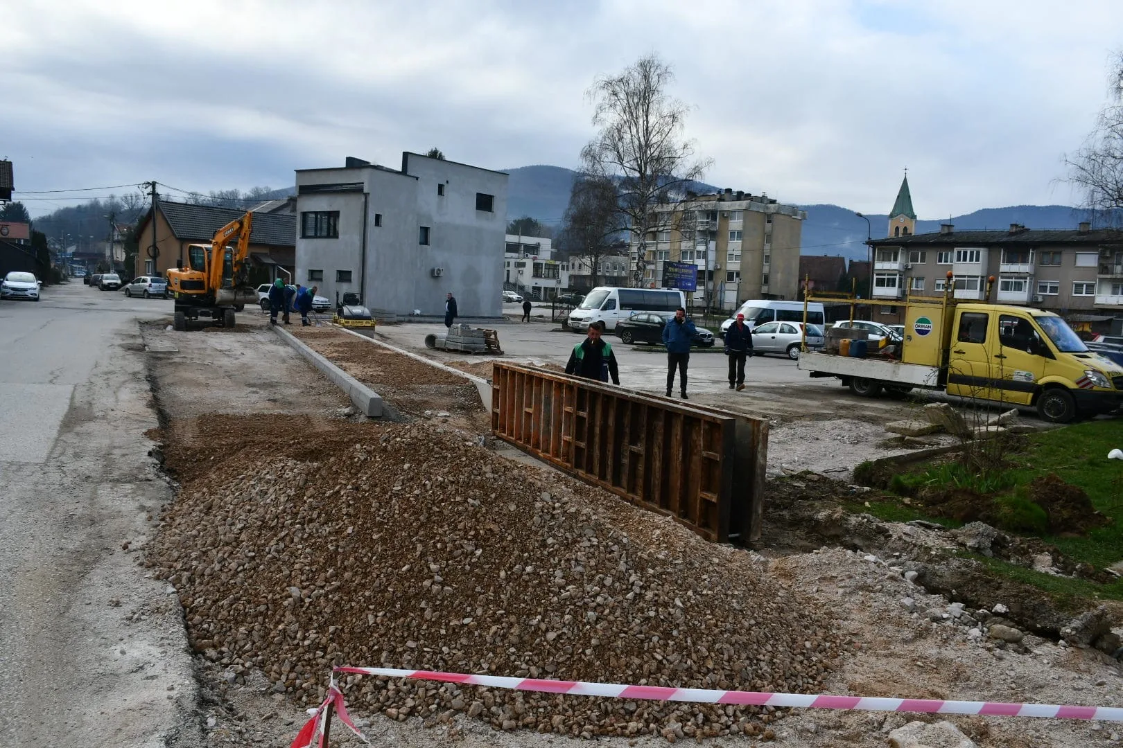 Radovi na uređenju parkinga i nogostupa, koji će povećati sigurnost i pristupačnost blizu Osnovne škole i Policijske stanice u Busovači, su u tijeku.