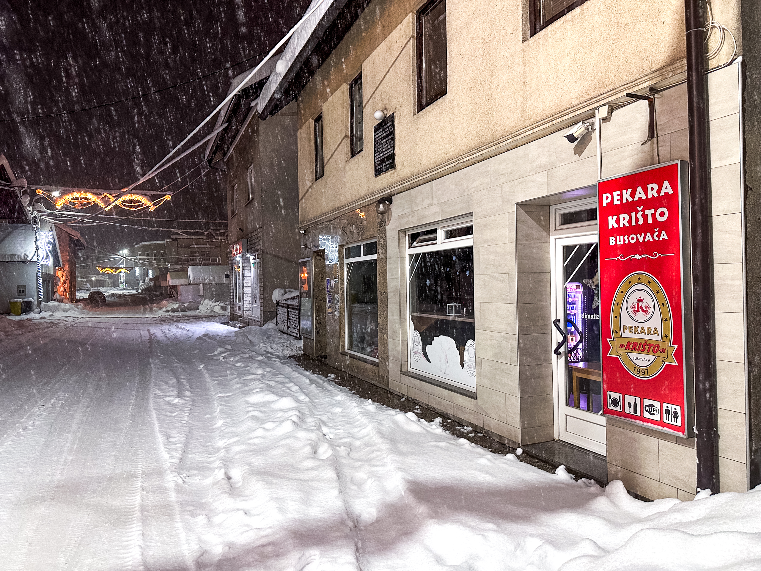 Večerašnji đir oko 23 sata ulicama Busovača donio je prizore kao s razglednice – snijeg je danas ozbiljno „uzeo stvar u svoje pahuljaste ruke“ i prekrio grad s oko 60 centimetara bijelog pokrivača.