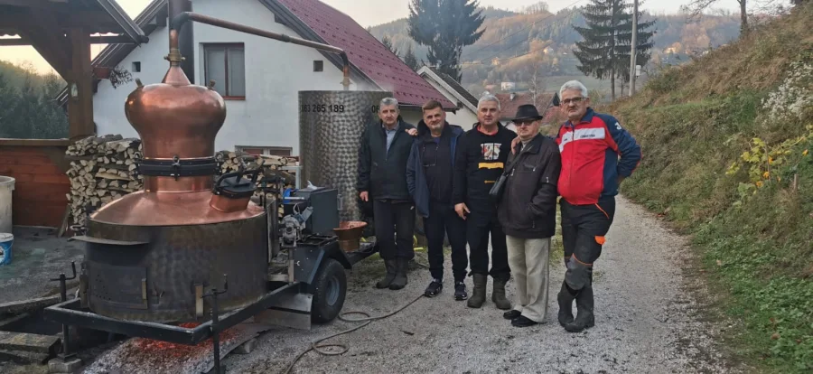 Jučer smo zabilježili lijepu fotografiju u selu Podjele kod Busovače. Kod obitelji Marić, zvani Galci, ‘vesela mašina’ odnosno kazan za rakiju veselo radi prkoseći vremenu.