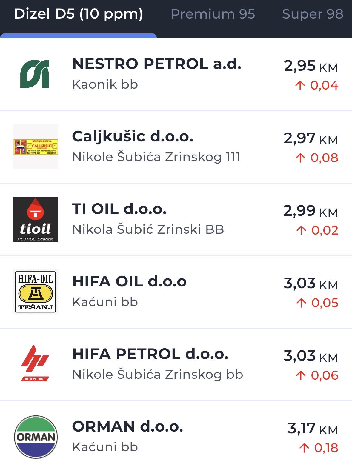 Jučer su se cijene dizela u Busovači kretale od 2,95 KM do 3,03 KM po litri.