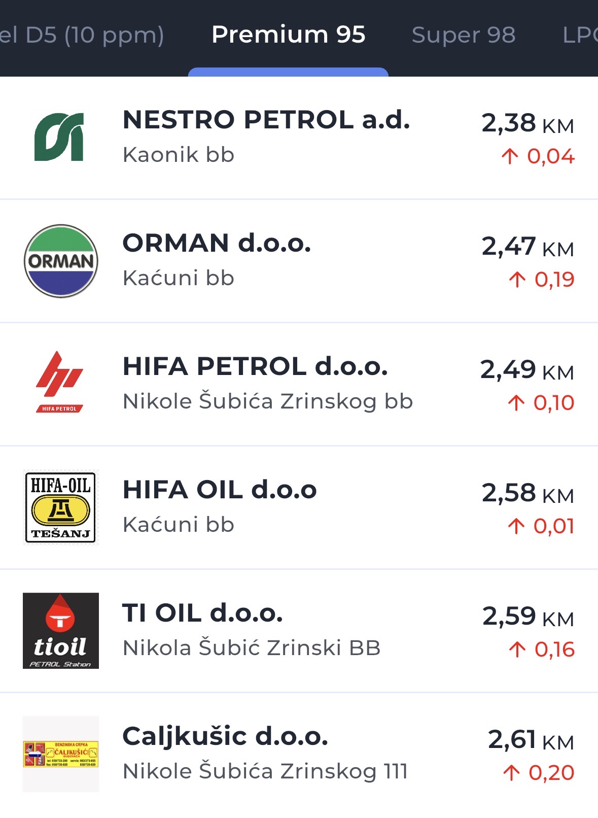 Cijene po benzinskim crpkama pogledajte u nastavku.