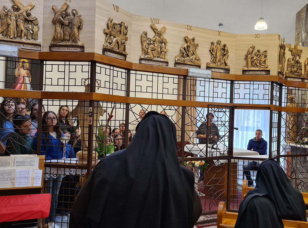 Fra Mario Jelić i zbor župe Ljubunčić stigli su već u jutarnjim satima. Susret je upriličen u samostanskoj kapelici gdje je opatica s. Hijacinta Batinić govorila o povijesti samostana i načinu života sestara klarisa, a nakon nekoliko zanimljivih pitanja hodočasnici su redovnicama otpjevali dvije pjesme.