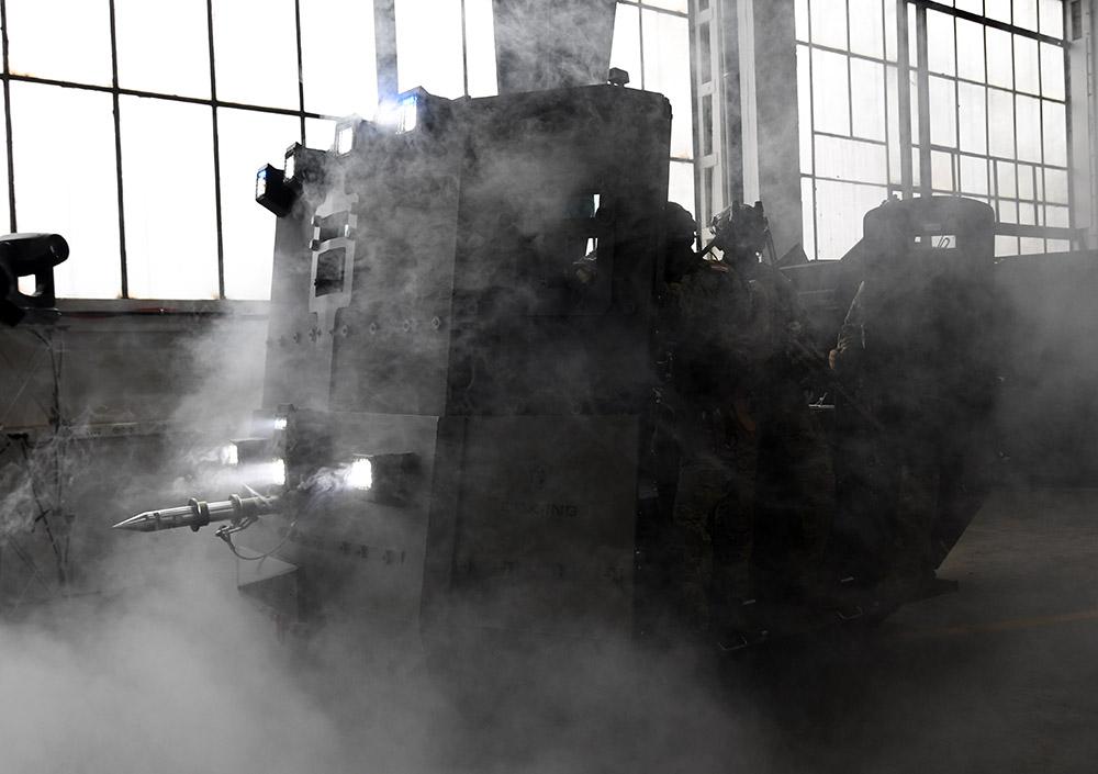 Krenimo onda od samih sklopivih frontalnih balističkih štitova. Riječ je o balističkoj zaštiti razine 4+ prema NIJ klasifikaciji (klasifikacija američkog Nacionalnog instituta za pravdu), a to znači da će zaustaviti protuoklopno streljivo kalibra 7,62mm. To je izrazito visoka razina zaštite za protuterorističke jedinice. Na štitove se mogu instalirati i izmjenjivi alati, poput onih za probijanje prepreka.