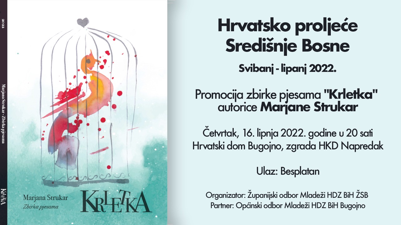 Nakon kazališne predstave u Gornjem Vakufu – Uskoplju, ‘Hrvatsko proljeće’ se nastavlja sutra u Bugojnu gdje će biti održana promocija zbirke pjesama književnice Marjane Strukar iz Viteza. Promocija će se održati u Hrvatskom domu Bugojno, s početkom u 20 sati.