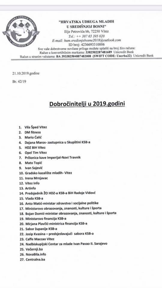 Mateo Marić- predsjednik udruge ” – stoji na facebook stranici Hrvatske udruge mladih u Središnjoj Bosni