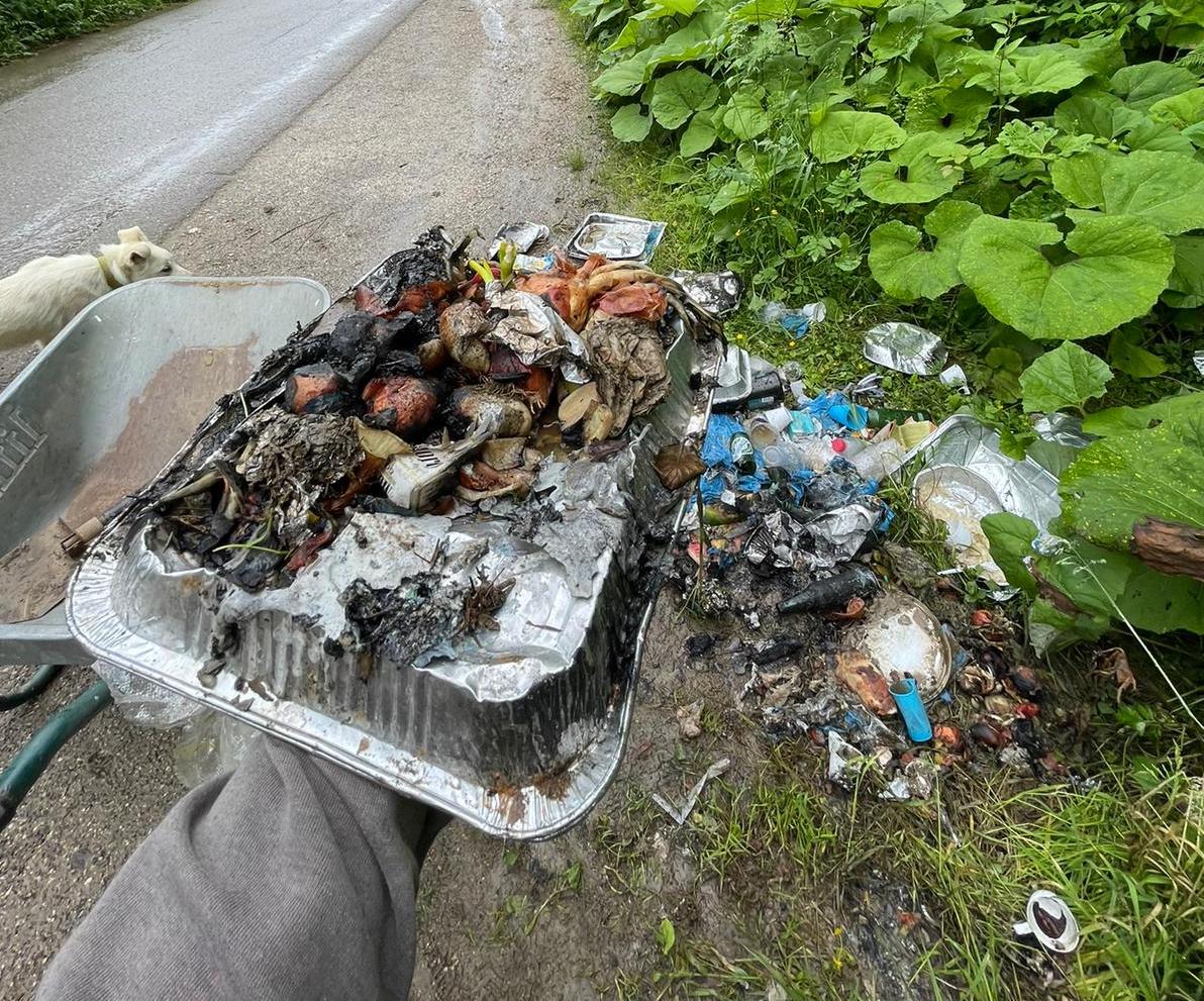 O tome smo pisali još 2007. god u OŠ Busovača i plakat je visio u holu škole neko vrijemem. No, fast forward nekih 15 god poslije učestala je pojava da se ovdje kraj puta namjenski ostavljaju veće količine smeća, većr od dvije ili tri boce ili pakle cigareta. Kao samoprozvana odgovorna osoba za ovaj dio Tisovca s ocem svake godine pokupim veću količinu smeća prije ili poslije skretanja našoj kući. Slučaj od danas je prešao igricu gdje smo zatekli namjeski ostavljen pribor za roštilj, od alu-ovala, plastike, kesa, boca, omota, organskog otpada – luka i lubenice, jelte, meso se pojelo.
