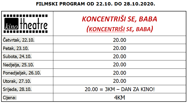 U kinu „Theatre“ od četvrtka, 22.10., pogledajte film Pjera Žalice „Koncentriši se, baba“ koji je otvorio ovogodišnji 26. Sarajevo film festival.