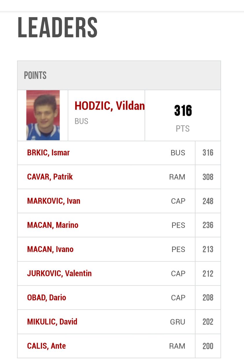 Trenutno je Vildan Hodžić sa 316 postignutih poena najbolji strijelac lige, a najbolji asistent je Ismar Brkić sa odlične 74 asistencije.