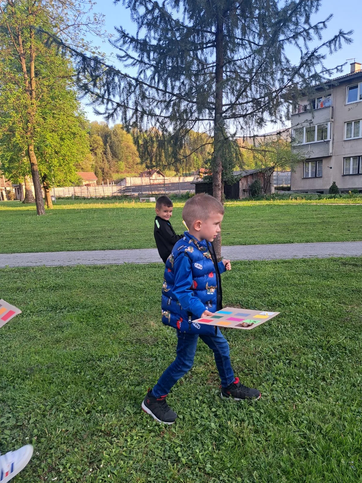 Naša igra privukla je u parku i brojne druge “tragače” koji su bili spremni pomoći. Odlično smo se zabavili i aktivirali, a kroz igru učili boje, komparaciju, vježbali svoje srtpljenje i koncentraciju na zadatak. Vremena je ostalo i za kratku igru na dječjem igralištu, dok nas je po povratku u našu Malu školu čekao novi zadatak.