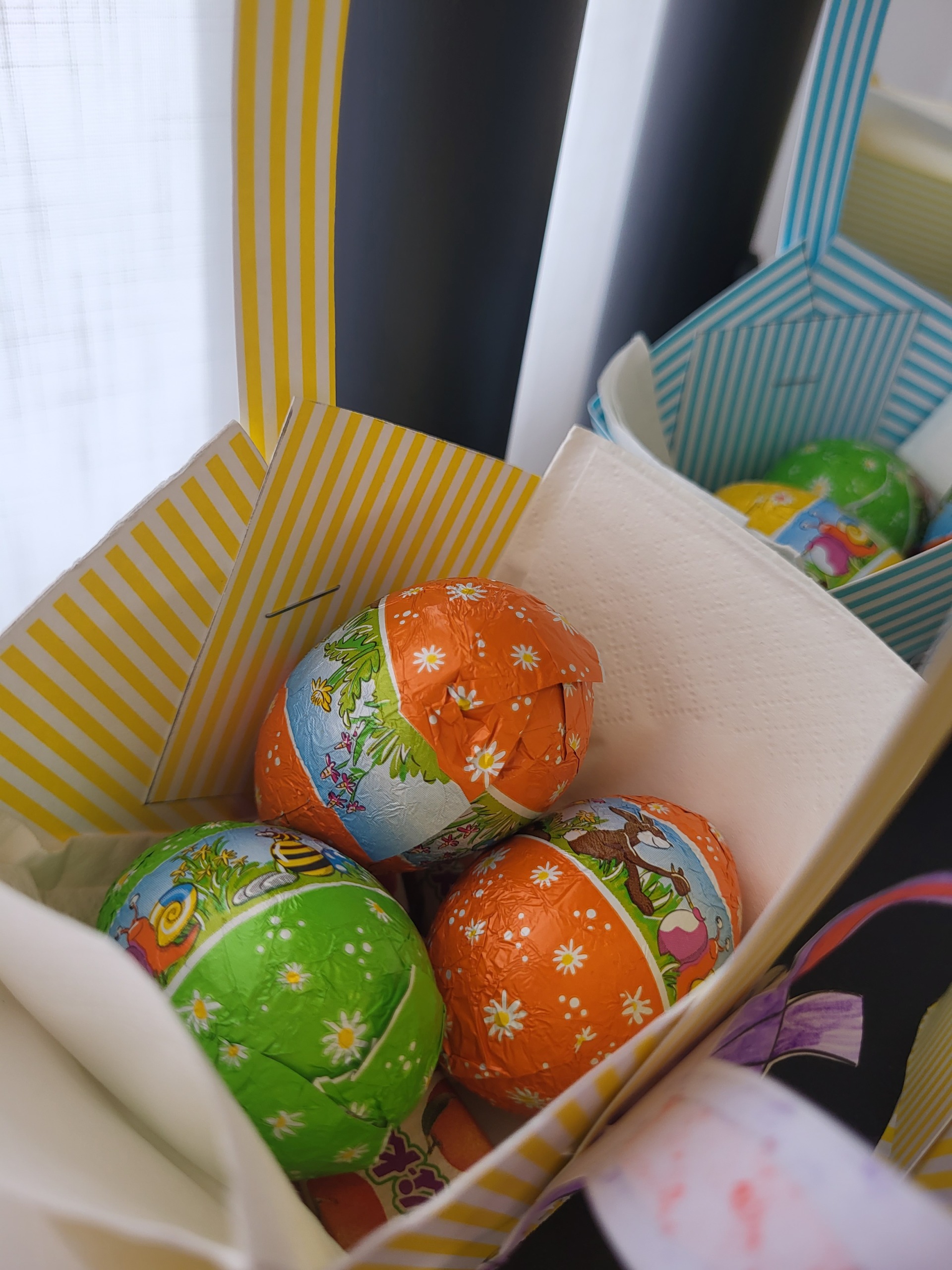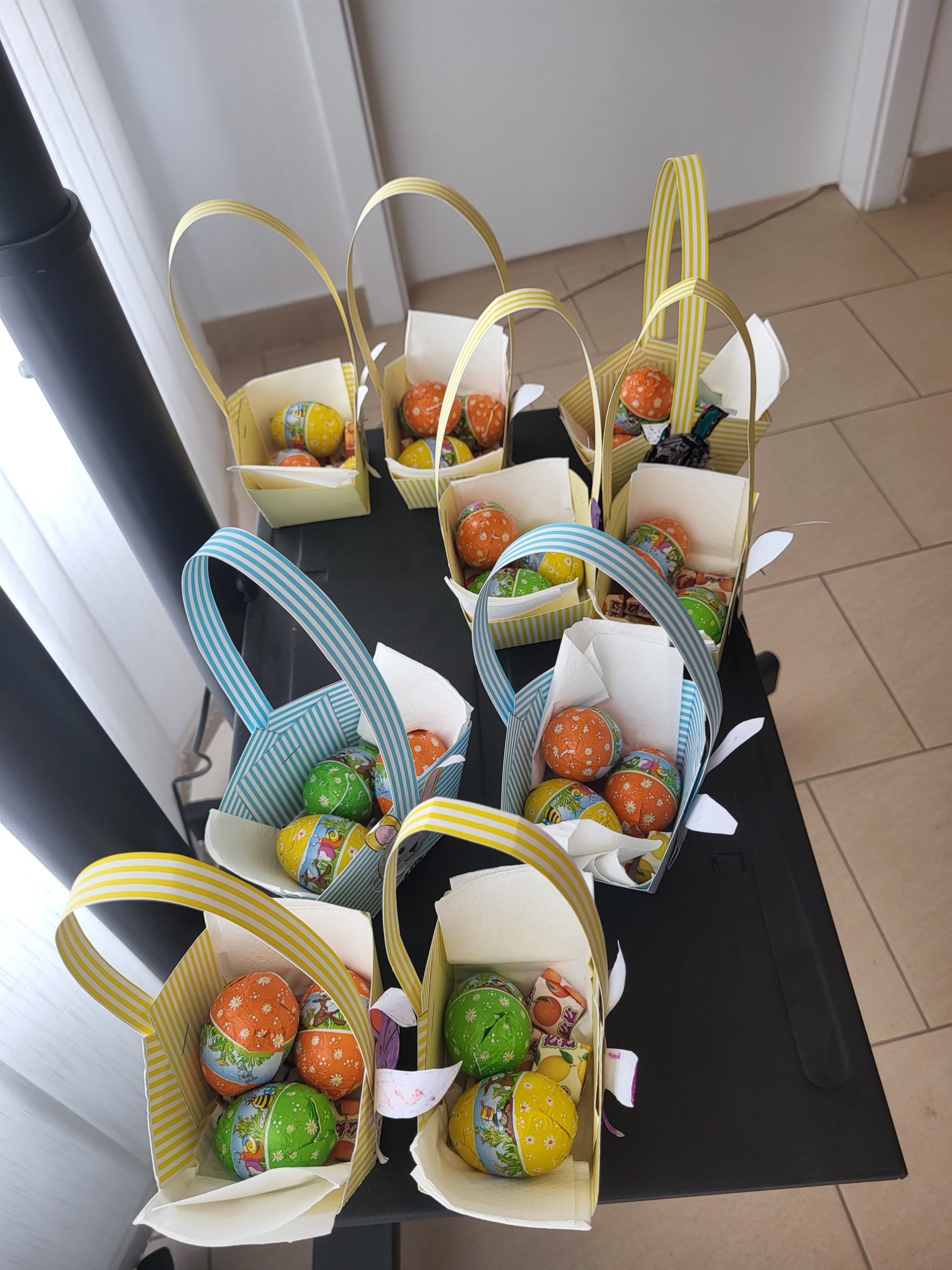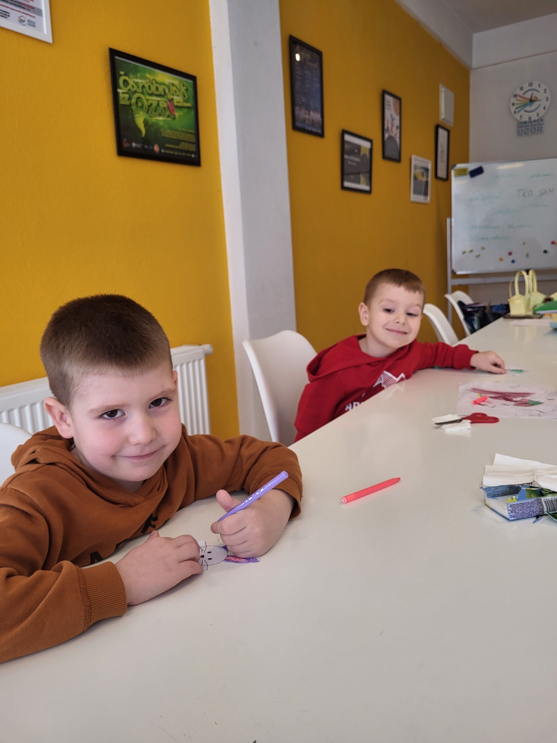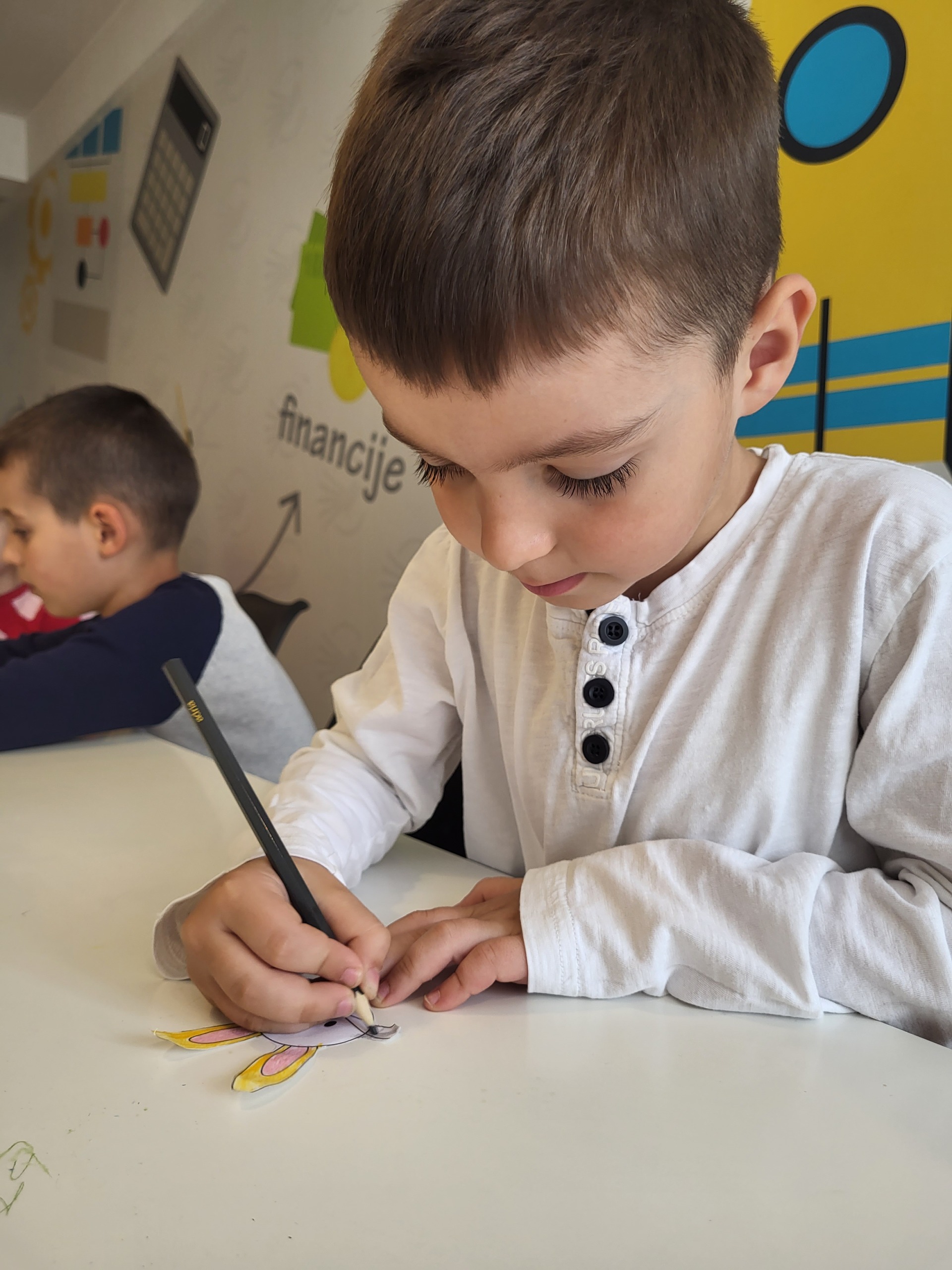 Drugi dio radionice posvetili smo izradi košarica i zečića za Uskrs. Košarice smo pravili od ukrasnog hamer papira, dok su djeca bojila i ukrašavala zečiće koje smo zalijepili na košarice. Na kraju smo napunili košarice čokoladnim jajima i bombonama kao poklon za Uskrs i zahvalu za ukazano povjerenje. Pored izrade košarica imali smo vremena i za društvene igre i aktivnosti za vježbu percepcije i zapažanja uz samostalno kreirane materijale.
