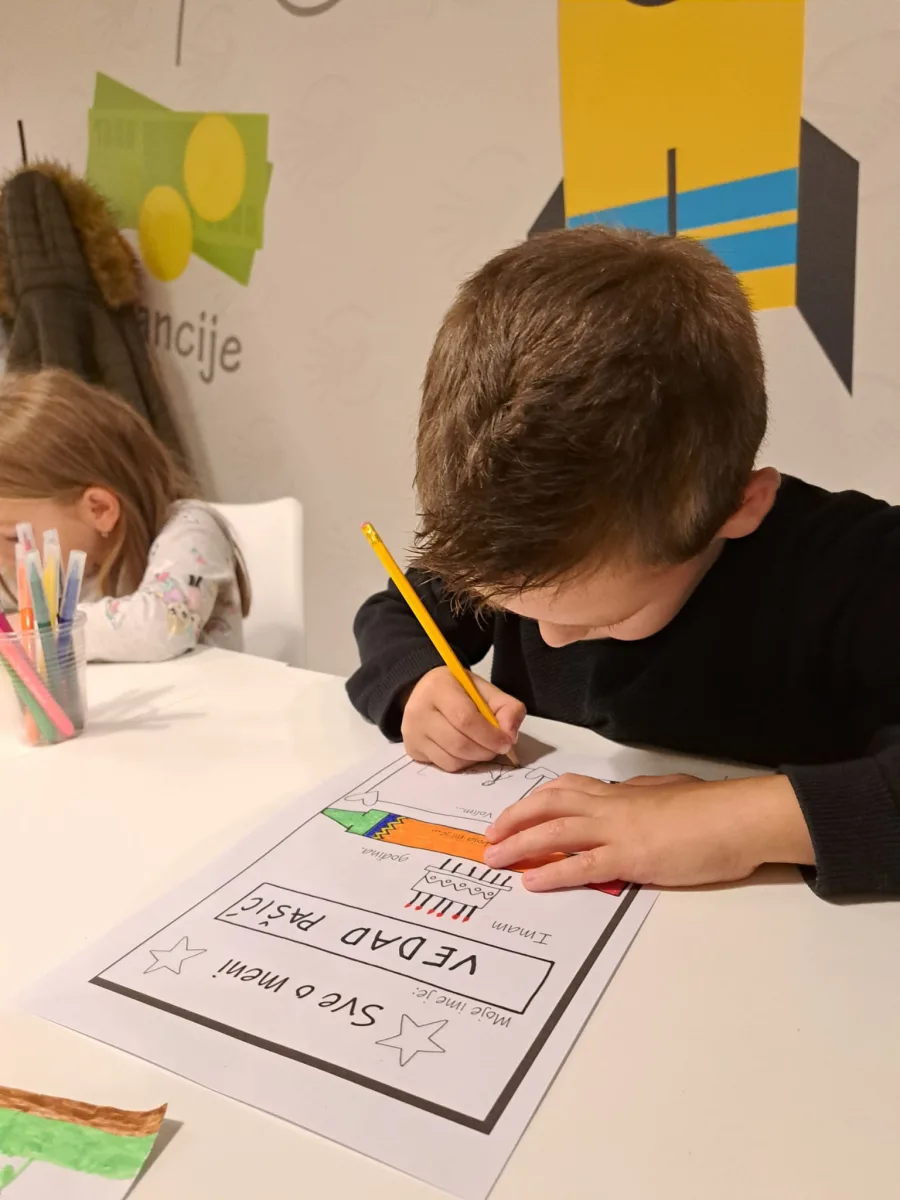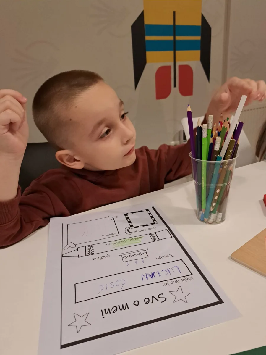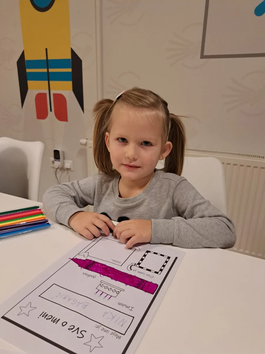 ♡ Okupljeni mališani uzrasta od 3 do 6 godina su prošli kratko međusobno upoznavanje kroz aktivnosti usmjerene na razgovor o sebi i svojoj obitelji. Po samom dolasku imali smo priliku crtati, razgovarati i upoznati se, nakon čega je slijedila aktivnost koju smo nazvali – Sve o meni. Svaki sudionik za ovu aktivnost dobio je radni listić sa nekoliko podataka o sebi koje smo zajedno ispunjavali, poput imena i prezimena, uzrasta, označili smo svoju omiljenu boju, nacrtali svoj portret i neku svoju omiljenu aktivnost. Listići su pomogli da se bolje upoznamo, a sljedeći zadatak bio je crtež obitelji.