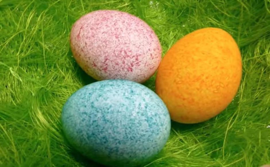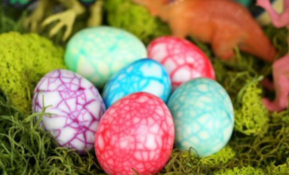 Razbijena kuhana jaja se također mogu iskoristiti za bojanje, a tekstura će izgledati kao jaje od dinosaura.