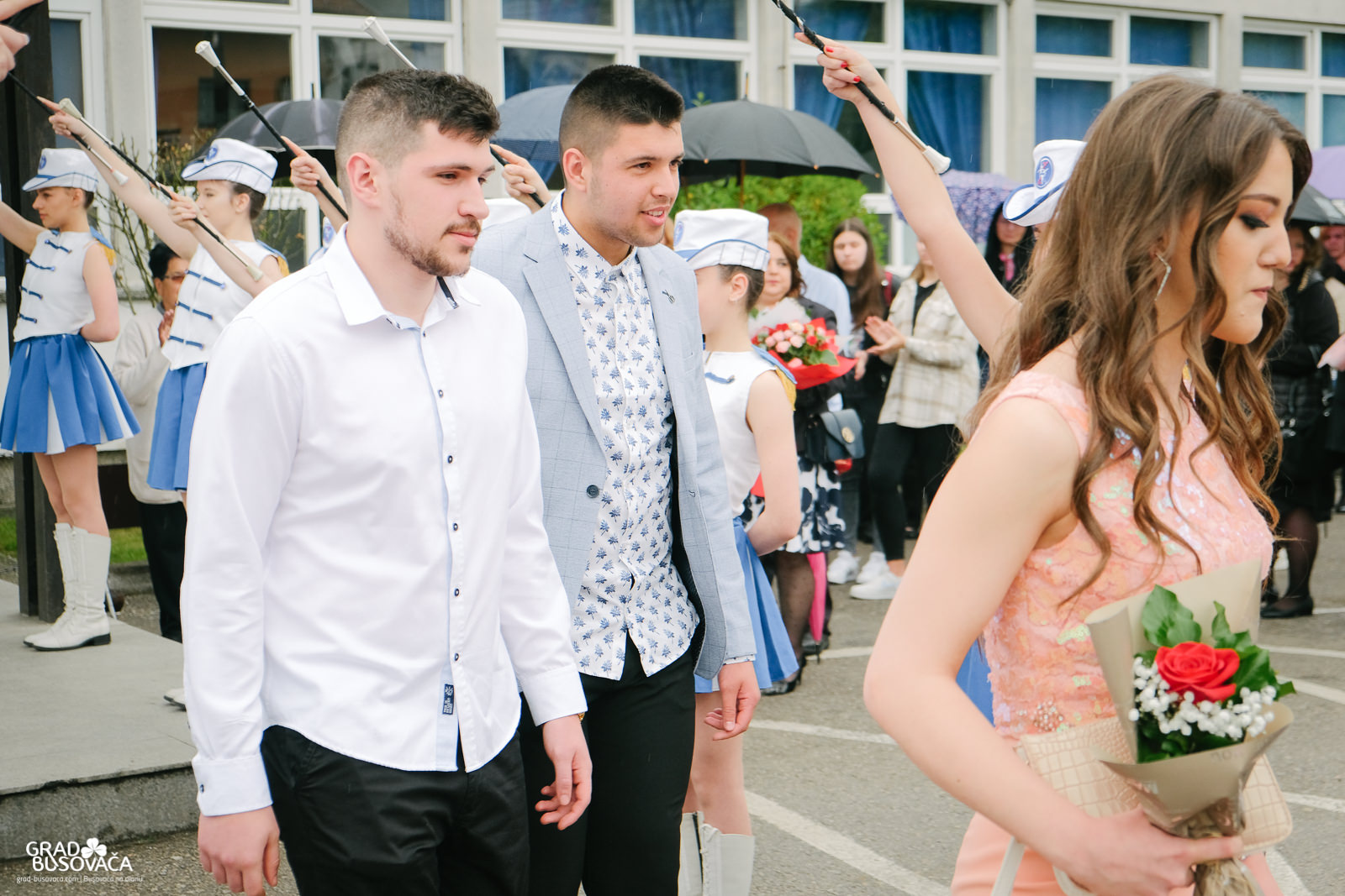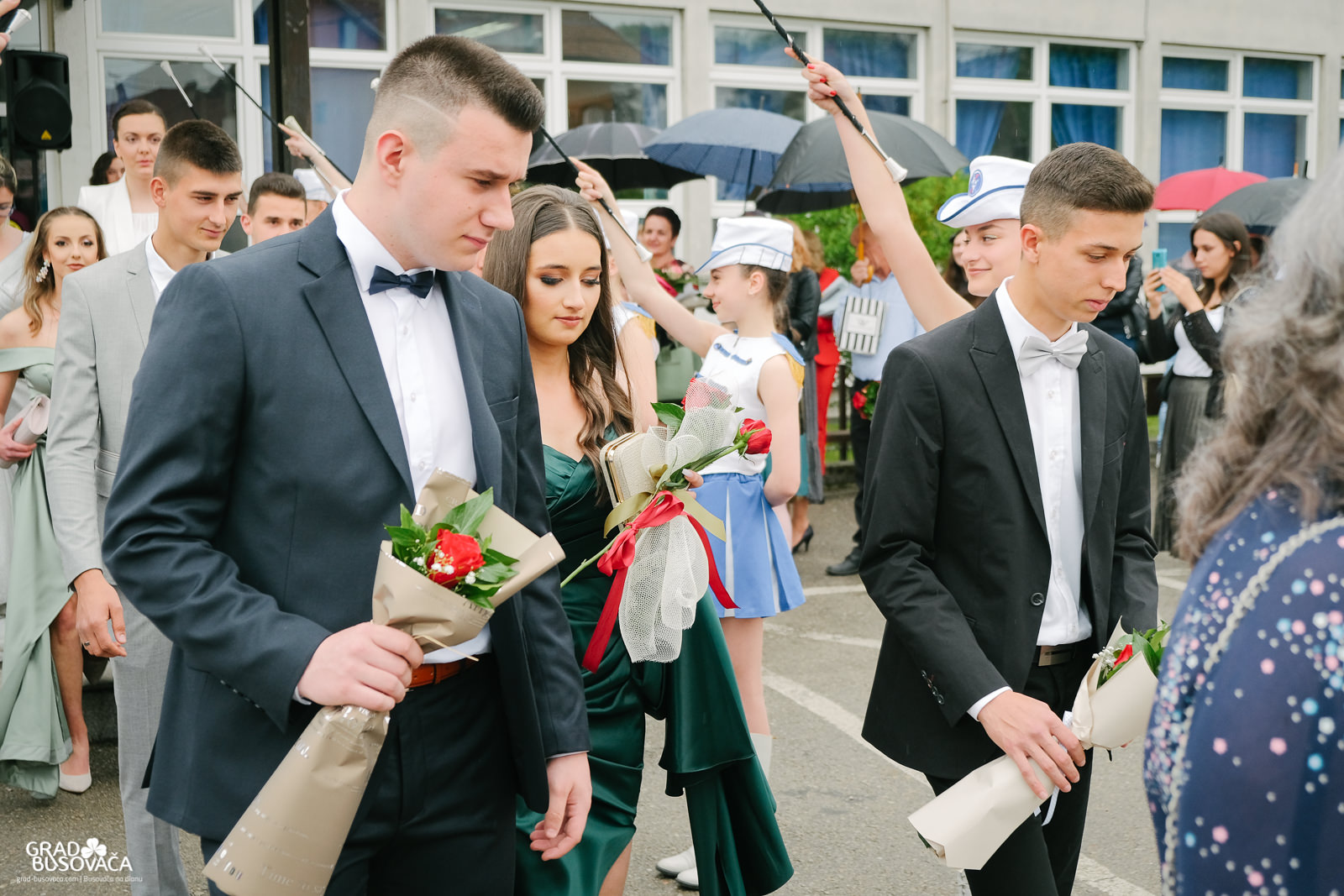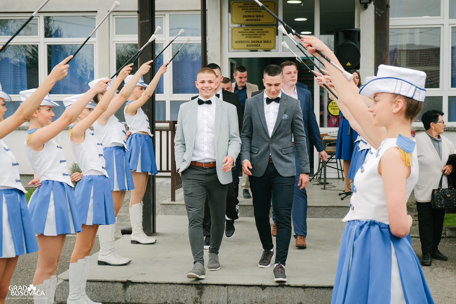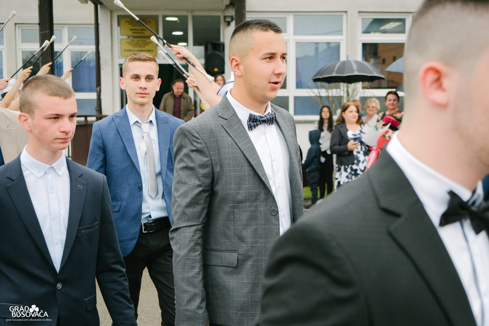 Promenadi je prethodilo neizostavno okupljanje ispred Srednje škole “Busovača”, gdje je maturante (gimnazijalci, frizeri, instalateri grijanja i klimatizacije, ugostiteljski tehničari kuharstva i tehničari cestovnog prometa), uz prisustvo mnogobrojnih posjetitelja, pozdravnim govorima ispratila obrazovna zajednica naše općine.