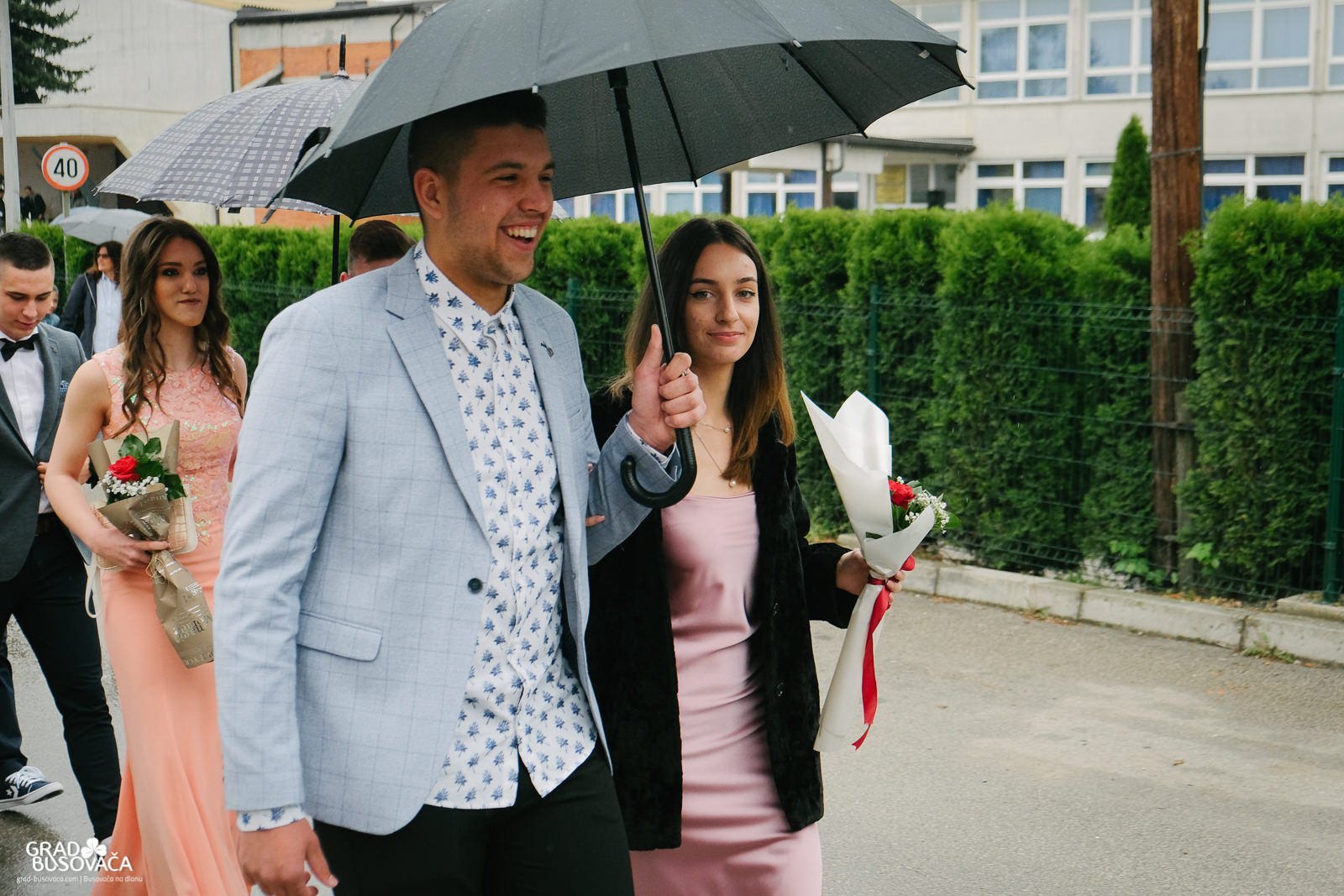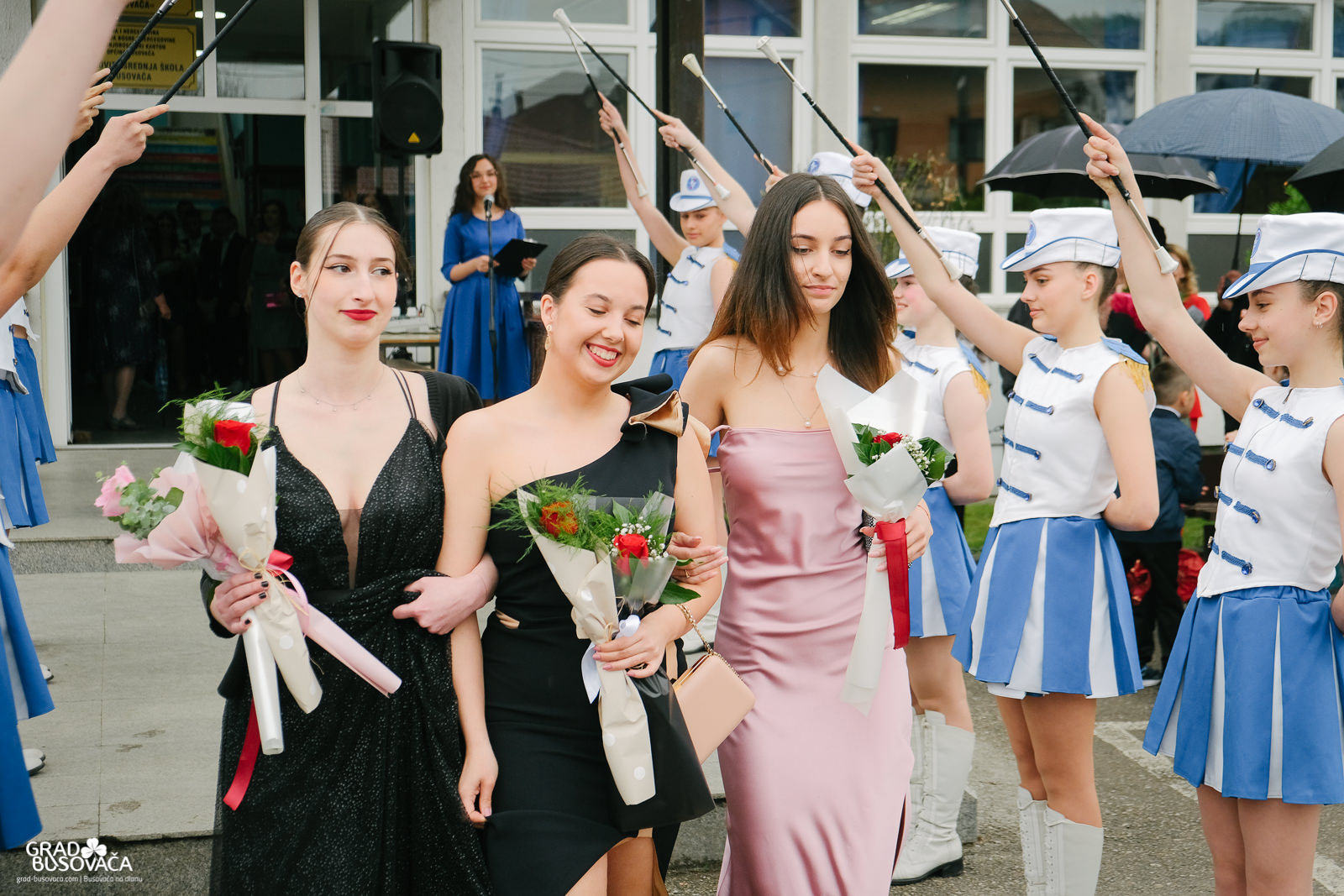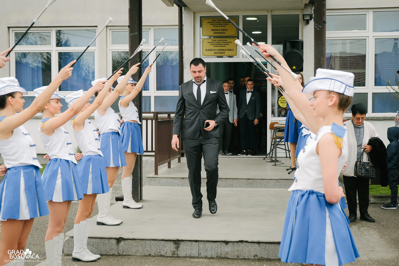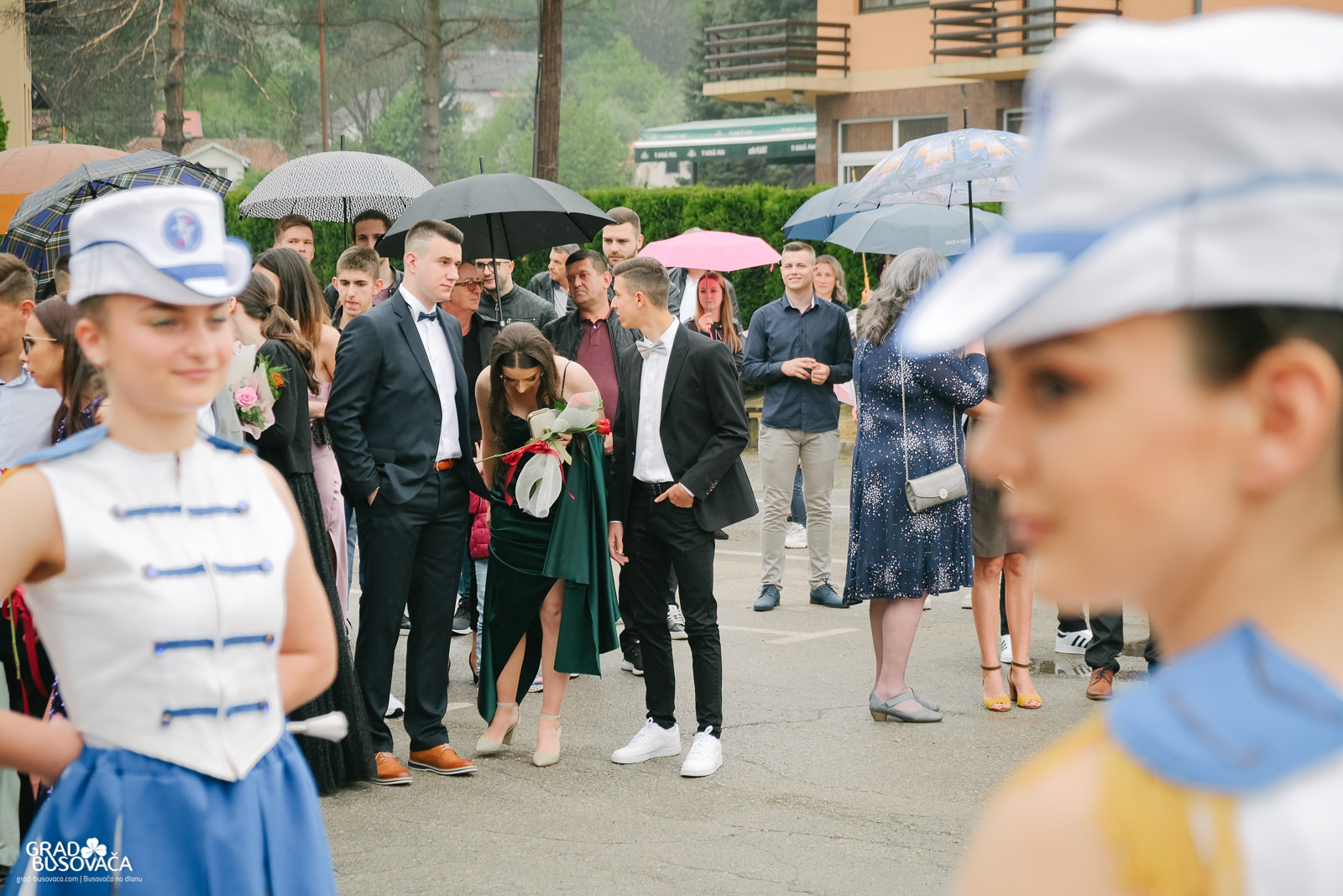 Promenadi je prethodilo neizostavno okupljanje ispred Srednje škole “Busovača”, gdje je maturante (gimnazijalci, frizeri, instalateri grijanja i klimatizacije, ugostiteljski tehničari kuharstva i tehničari cestovnog prometa), uz prisustvo mnogobrojnih posjetitelja, pozdravnim govorima ispratila obrazovna zajednica naše općine.