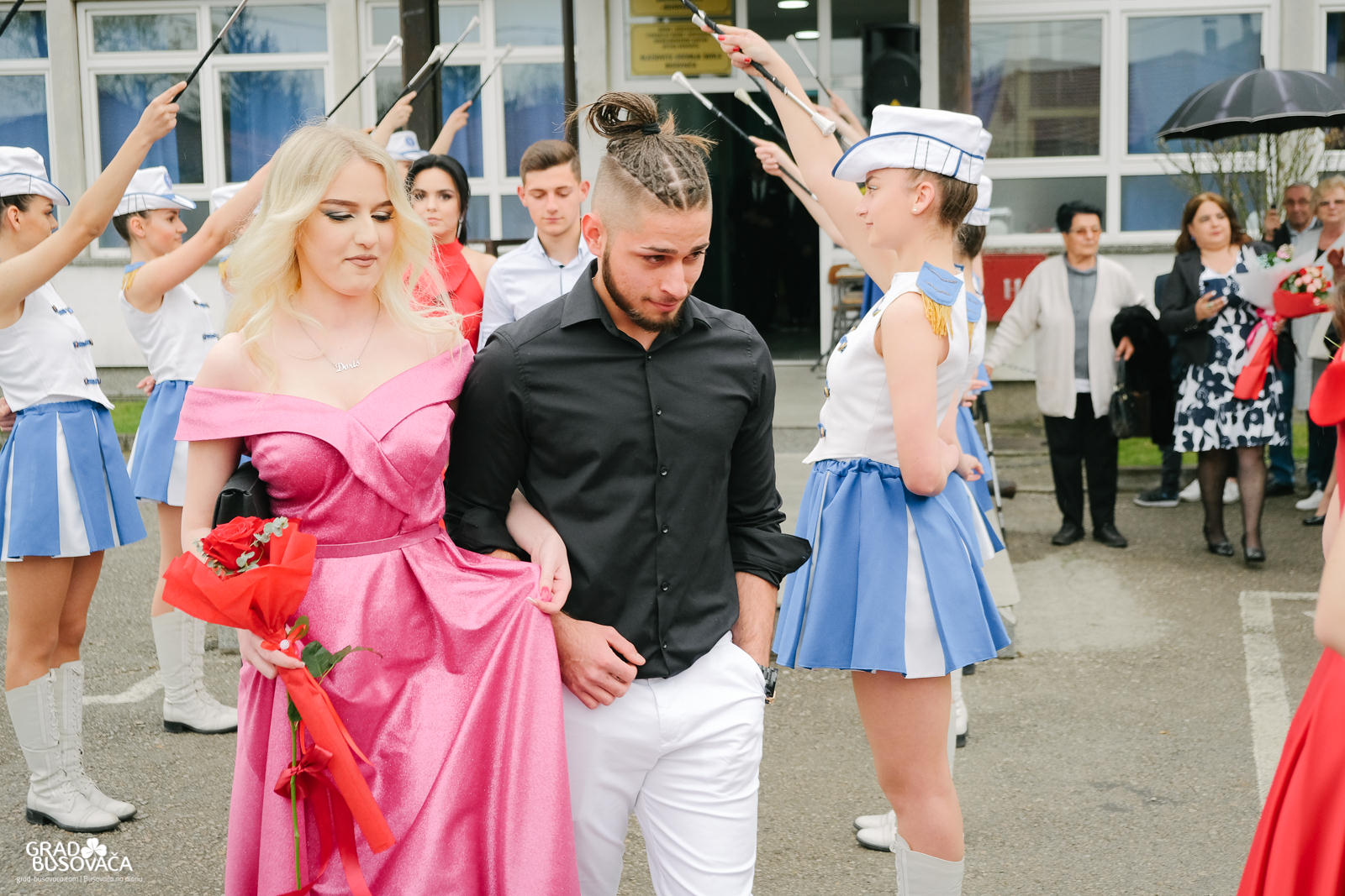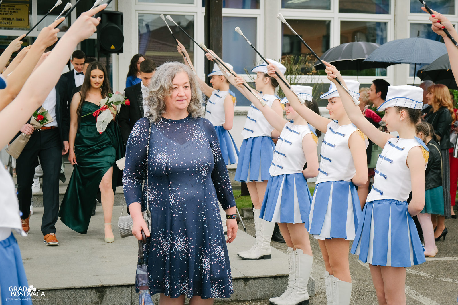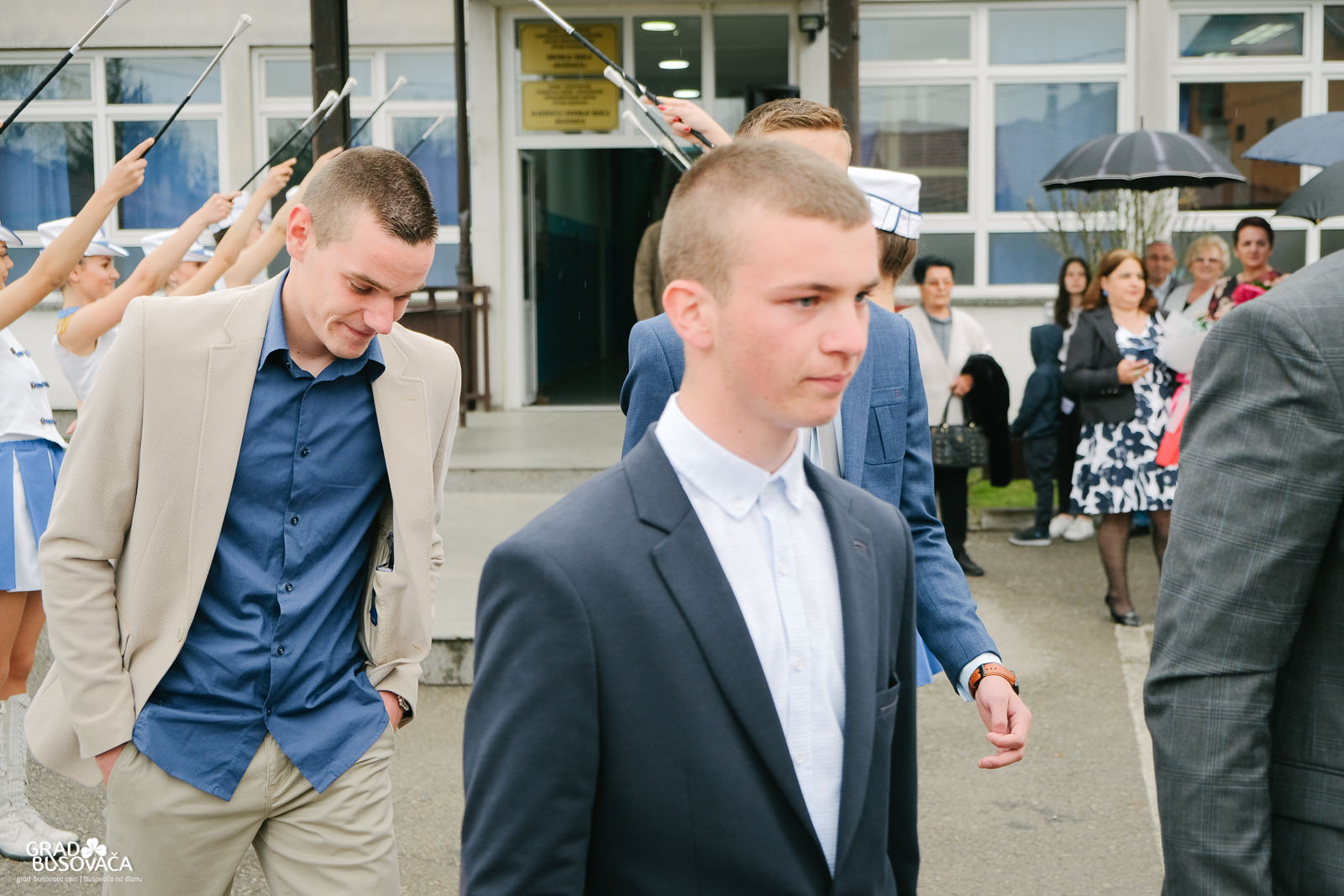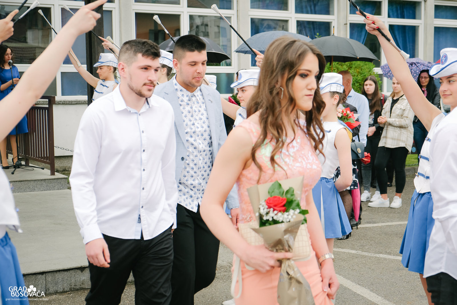 Promenadi je prethodilo neizostavno okupljanje ispred Srednje škole “Busovača”, gdje je maturante (gimnazijalci, frizeri, instalateri grijanja i klimatizacije, ugostiteljski tehničari kuharstva i tehničari cestovnog prometa), uz prisustvo mnogobrojnih posjetitelja, pozdravnim govorima ispratila obrazovna zajednica naše općine.