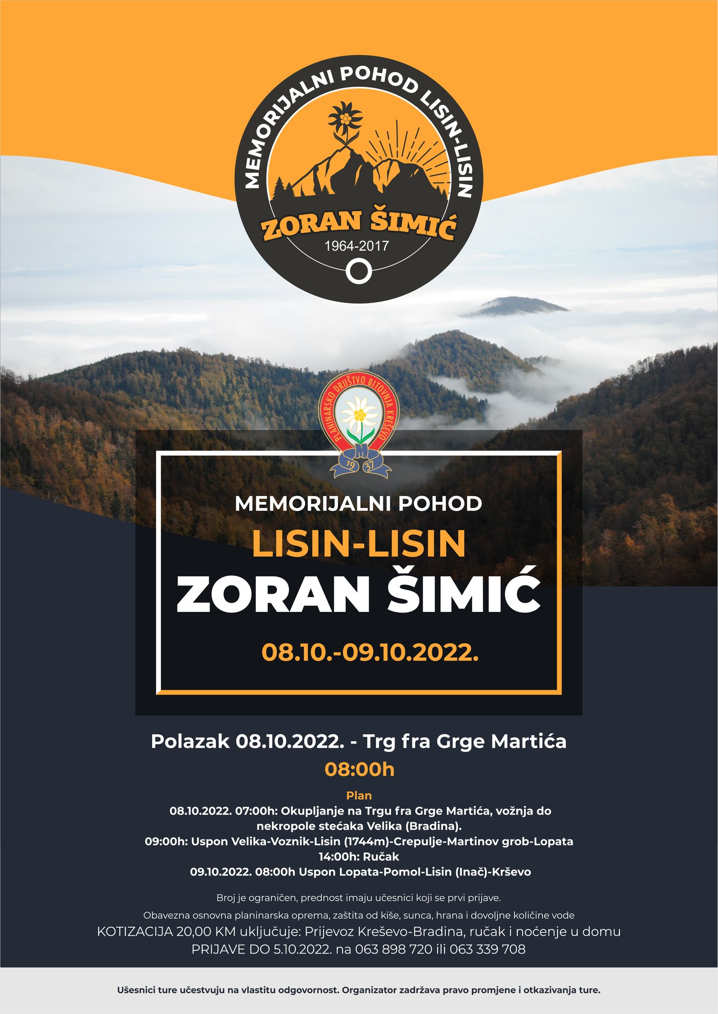 Planinarsko društvo “Bitovnja” organizira dvodnevni memorijalni pohon Lisin-Lisin “Zoran Šimić”.