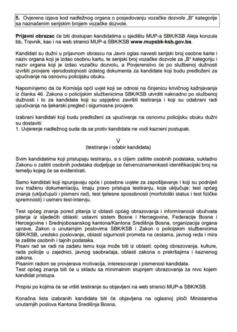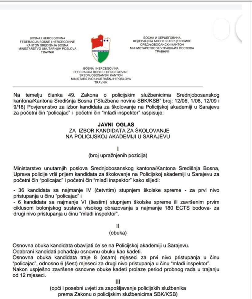 MUP KSB u potrazi je za 36 policajaca i 6 mlađih inspektora. Prenosimo oglas u cijelosti: