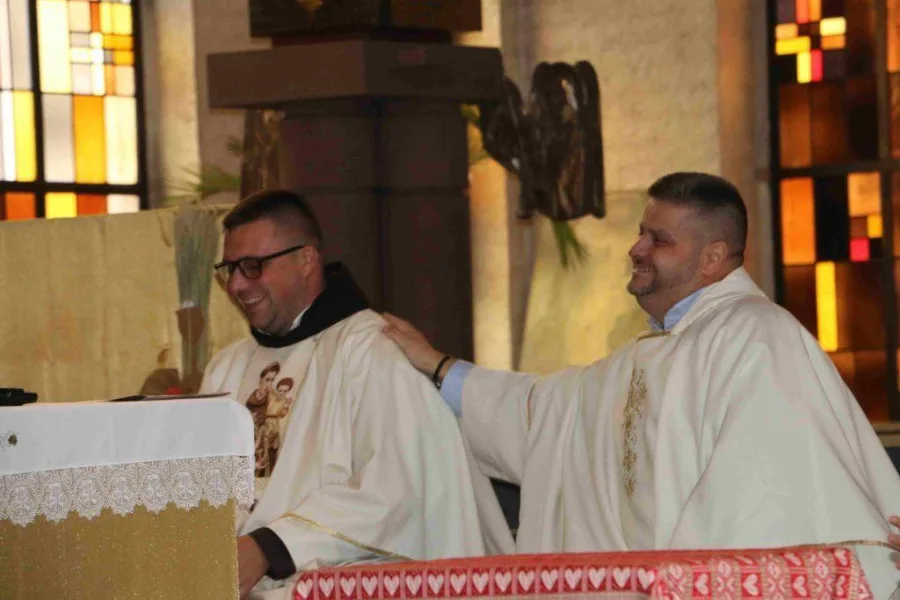 – Mi svećenici smo samo ljudi, ali volimo svoj narod, borimo se za svoj narod, želimo biti dobri pastiri. Zato se molite za nas da budemo još bolji i nadam se da će se netko oduševiti i krenuti svećeničkim putem. Ovom današnjem svijetu je potreban Bog i Crkva, a fra Nikoli čestitam i neka ga dragi Bog vodi njegovim putem, rekao je fra Kristijan.– Kad me fra Kristijan pozvao da dođem ovdje nije mi odmah rekao da će ovo biti mlada misa. Budući da je bio spriječen doći na mladu misu koju sam slavio 23. srpnja u Busovači, rekao je pa ti ćeš i u Wiesbadenu proslaviti svoju mladu misu. Pitao sam kakve ja veze imam s Wiesbadenom, a on je odgovorio u svom stilu: bolan, gore žive dobri ljudi i oni zaslužuju da u njihovoj župi bude mlada misa. Prihvatio sam poziv i stvarno sam počašćen što sam danas ovdje s vama, rekao je fra Nikola Livaja.