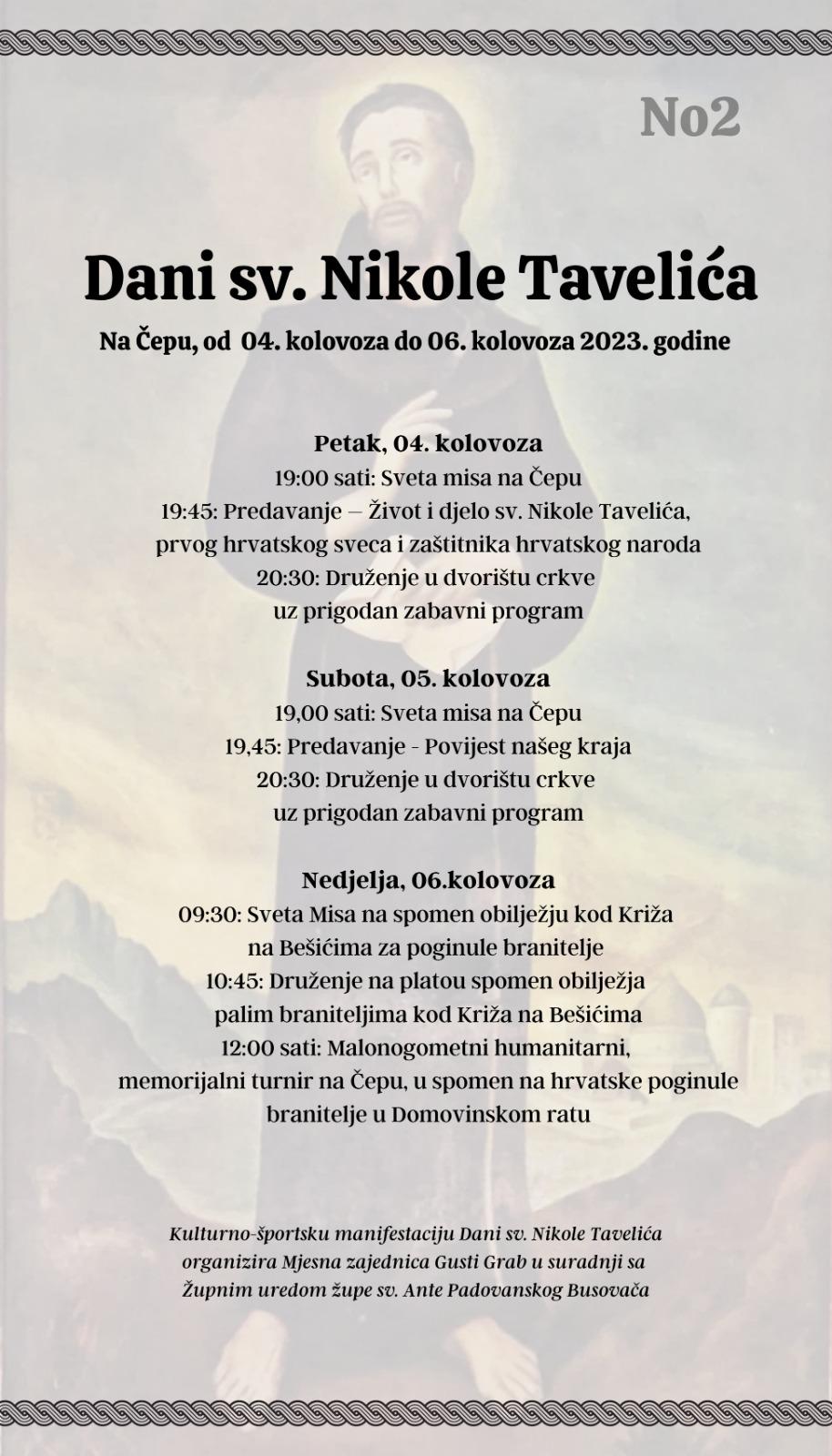 I ove godine će se na Čepu održati manifestacija “Dani sv. Nikole Tavelića”.