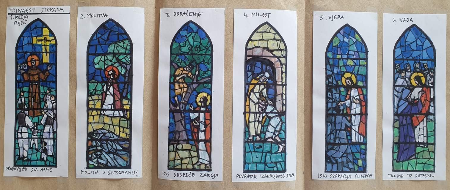 Preostalo je uraditi 13. vitraja i Vlatko je već dao idejno rješenje za ove vitraje. Tema je trinaest utoraka sv. Anti. To je jedinstvena tema i bit će unikat. Dobili smo i sva potrebna odobrenja od samostana, provincijalata, nadbiskupije, ministarstva kulture i zavoda za zaštitu spomenika, jer je crkva pod zaštitom države.