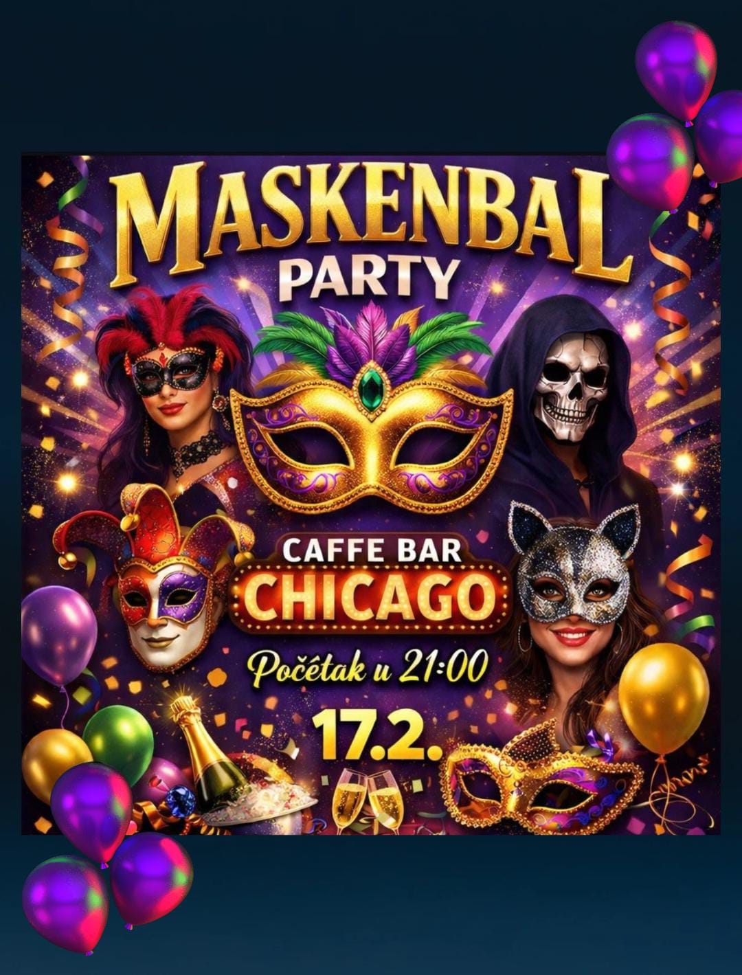 Riječ je o Maskenbal partyju, koji počinje u 21:00 sat, a organizatori najavljuju večer ispunjenu veseljem, glazbom i kreativnim maskama.