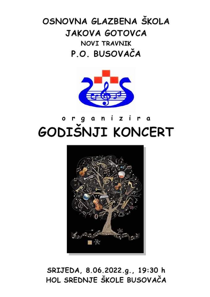 U srijedu, 8. lipnja 2022. godine održat će se godišnji koncert Osnovne glazbene škole Jakova Gotovca Novi Travnik P.O. Busovača.
